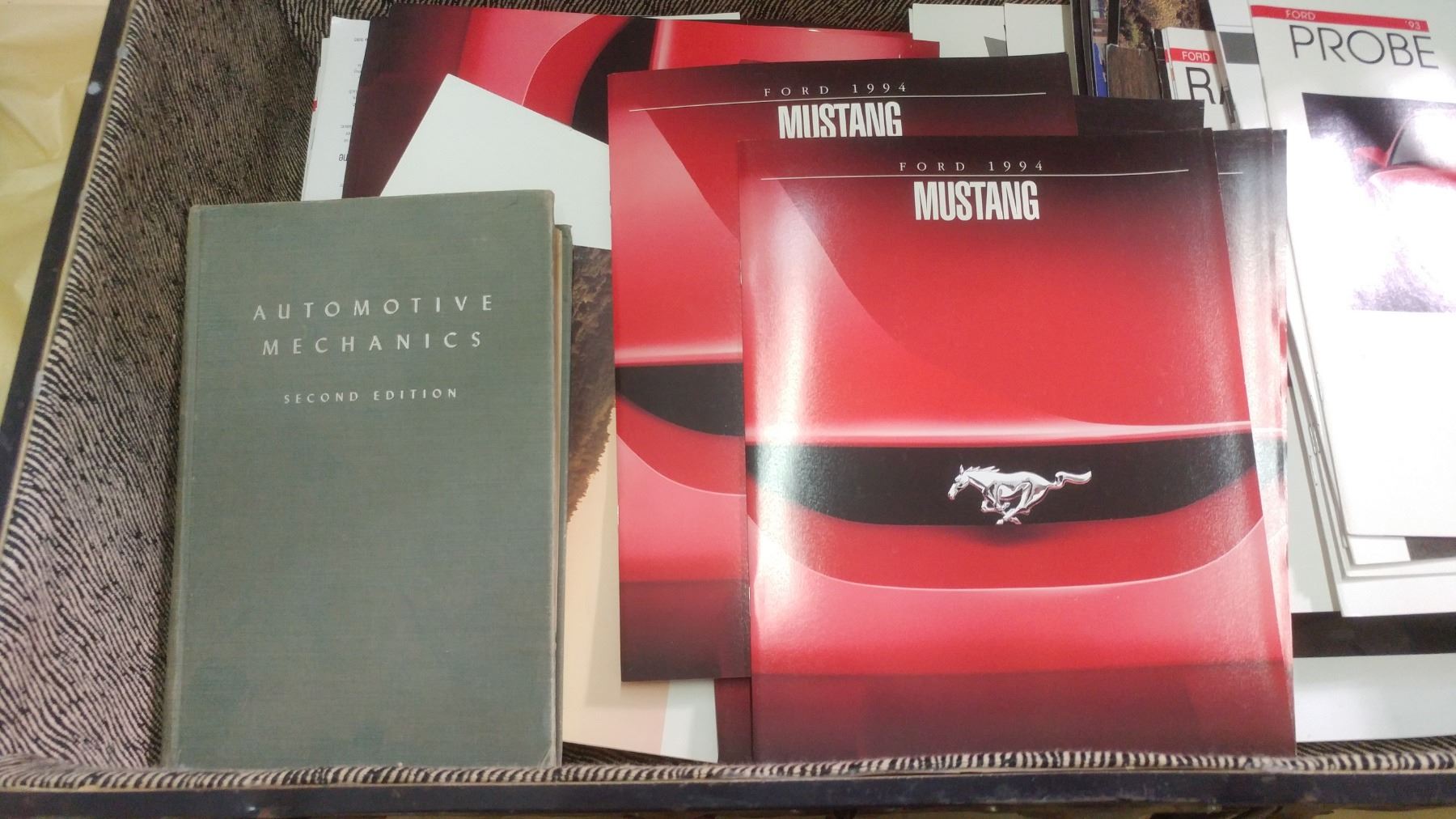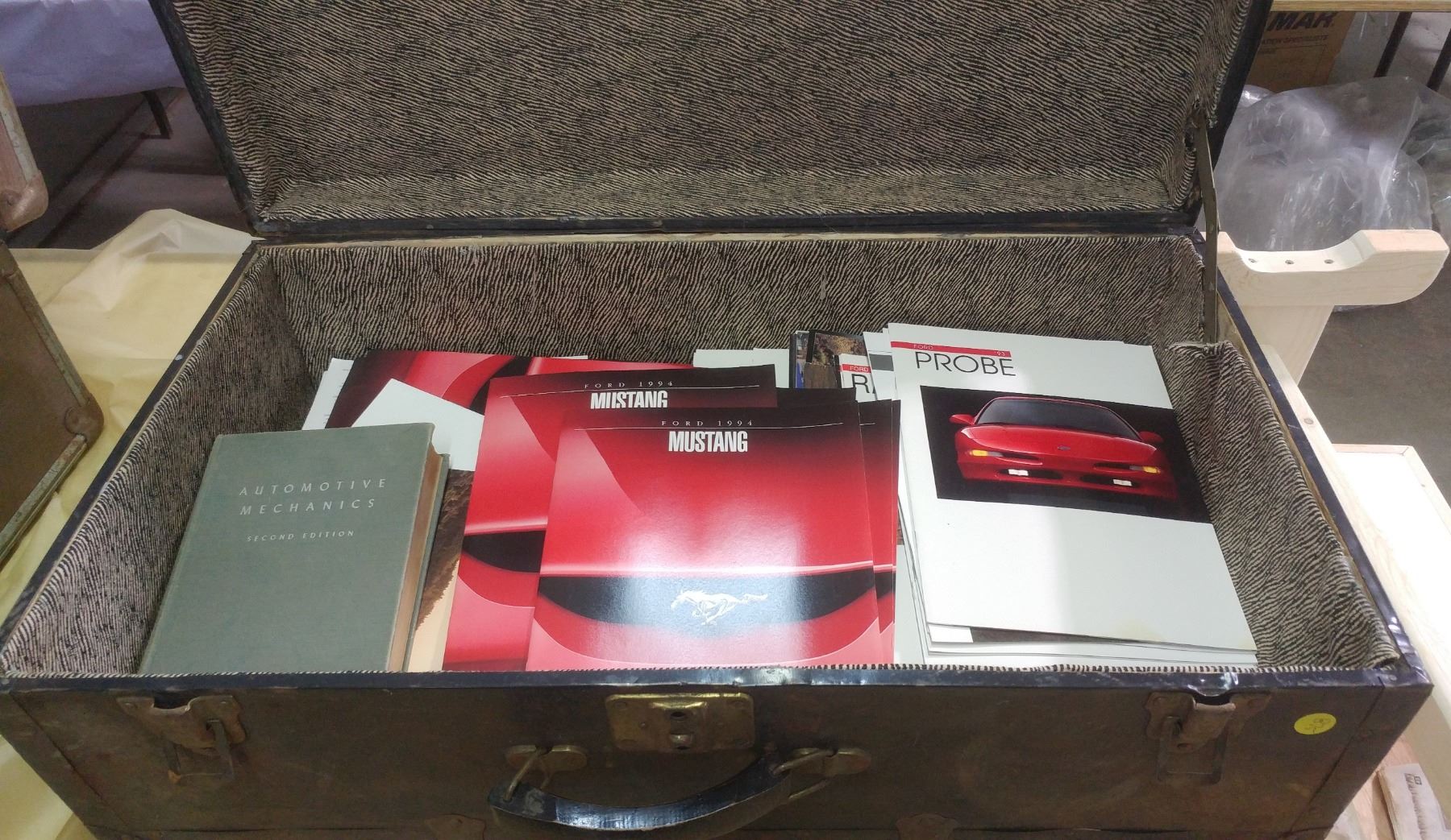 METAL TRUNK FULL OF ASSORTED FORD BROCHURES AND MECHANIC BOOK