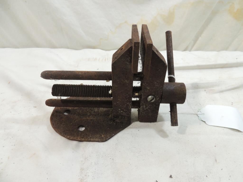 VINTAGE TABLE TOP VISE, VINTAGE VISE, TOOL, MACHINES, WOOD WORKING, GARAGE, SHOP, AS SHOW SEE PHOTO FOR MORE DETAILS