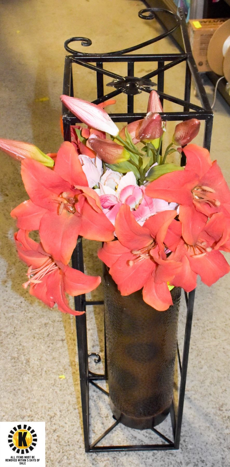METAL WALL SHELF & VASE W/ARTIFICIAL FLOWER