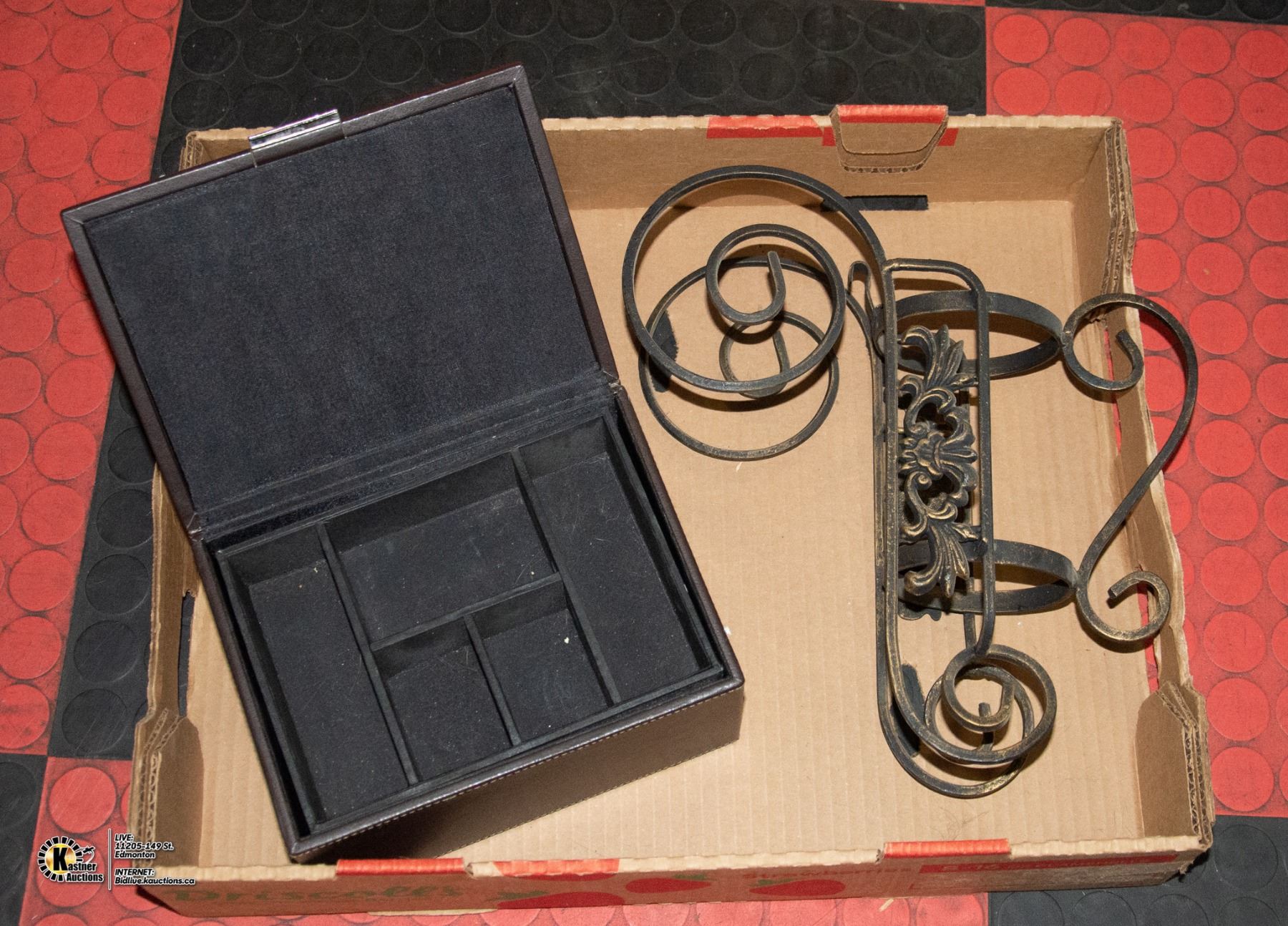 LOT OF METAL WINE HOLDER & BROWN VINYL MILANO DESK CADDY