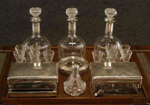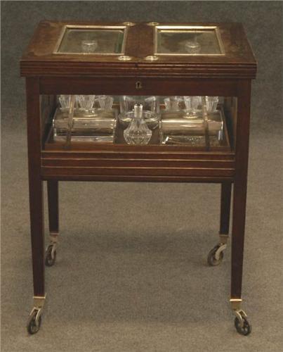 "METAMORPHIC BAR CABINET with silver and crystal fittings by Ernst Menner, Stuttgart, Germany circa 1830 23""w, 29 1/2""h, 20""d lacking 2 of 12 shot glasses, otherwise excellent "