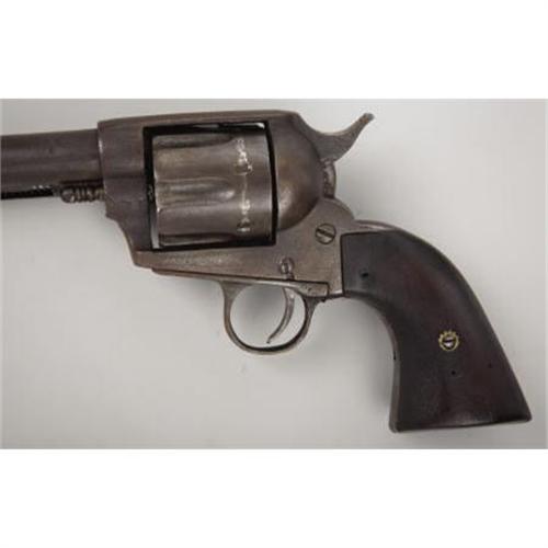 <B>MEXICAN COPY OF COLT SINGLE ACTION</B></I> - Serial number 7, circa 1880s-1890s. 5" barrel in .44 calibre. Left side of frame is stamped ".44 caliber 1873". Cylinder indexes but will not stay on full cock. Wood grips with escutcheon. <BR><BR><B>Condition:</B></I> Crudely constructed with dark patina over most of metal surfaces. Scattered pitting throughout. Wood grips are good and fit well.<BR><BR><b>Shipping:</b> Bats, Clubs, Sticks, Swords, Rif (<a target="_blank" href="http://www.heritageauctions.com/common/shipping.php">view shipping information</a>)