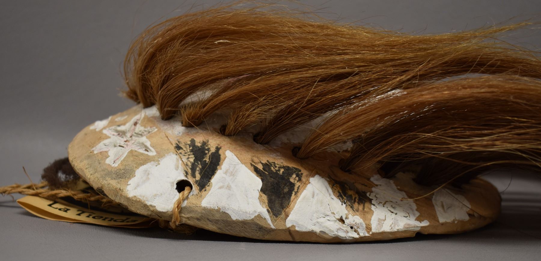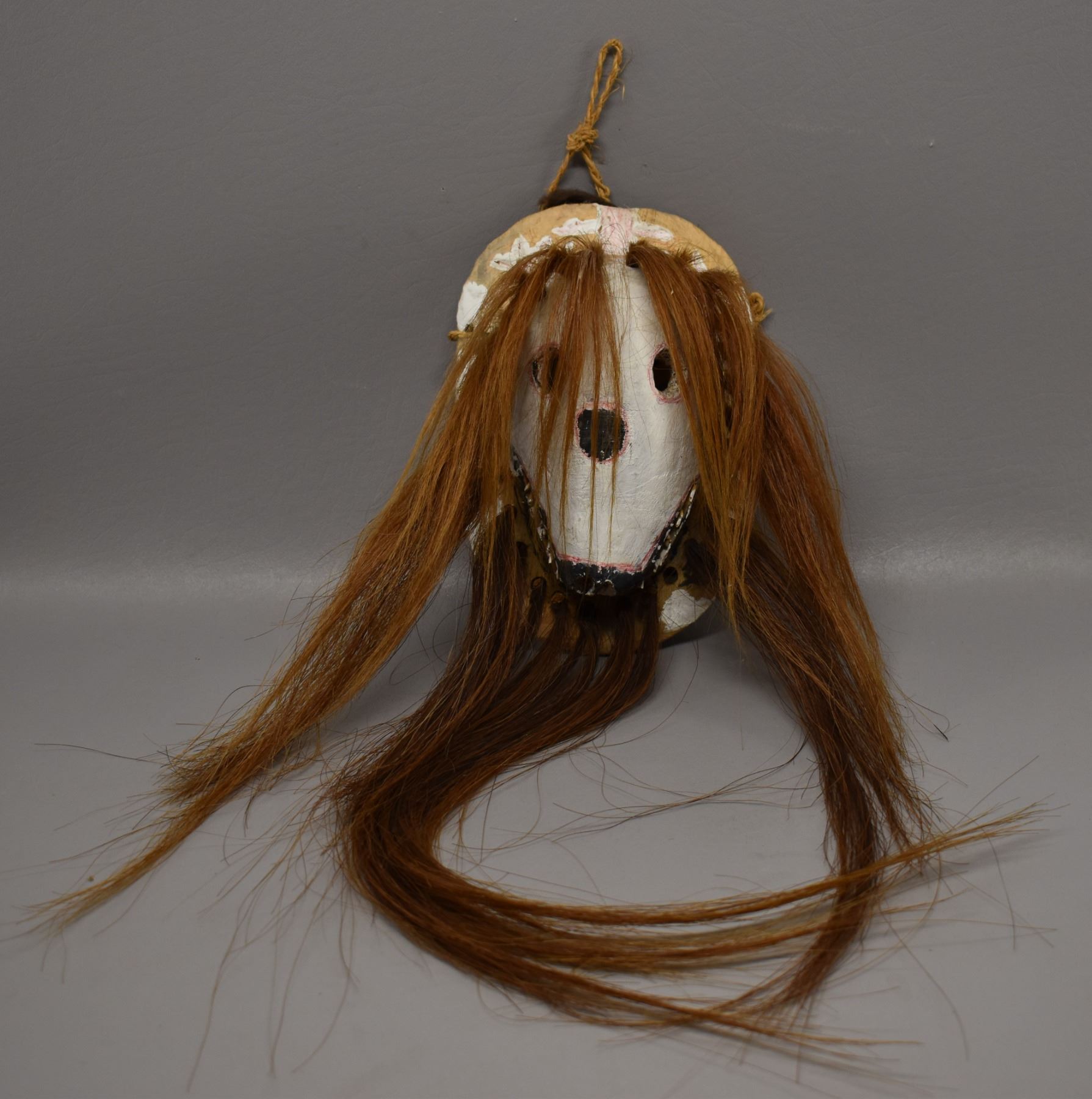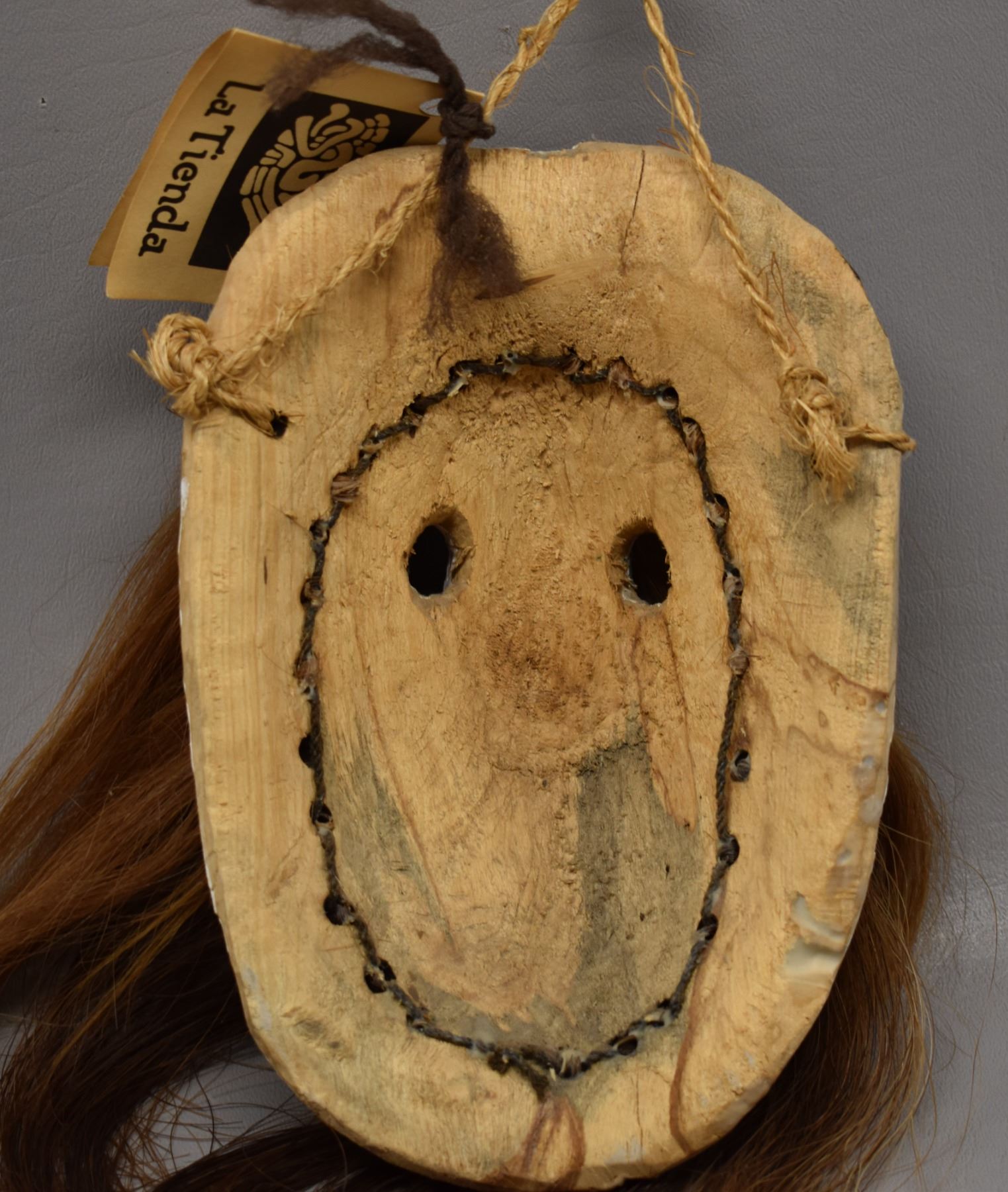 1980-90's Mexican hand carved and painted Mayo mask design with horse hair 5.25" x 7.75" excluding hair