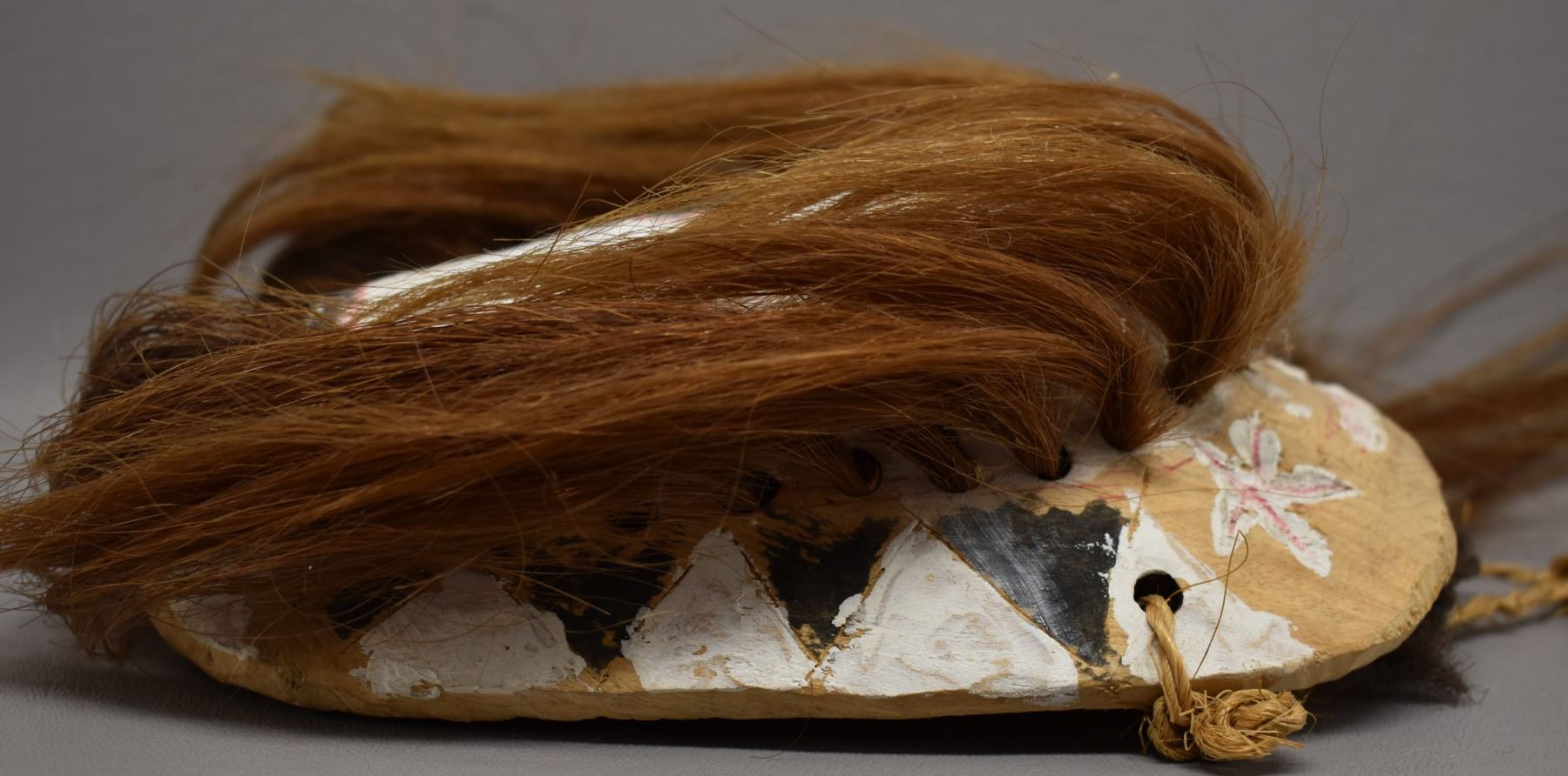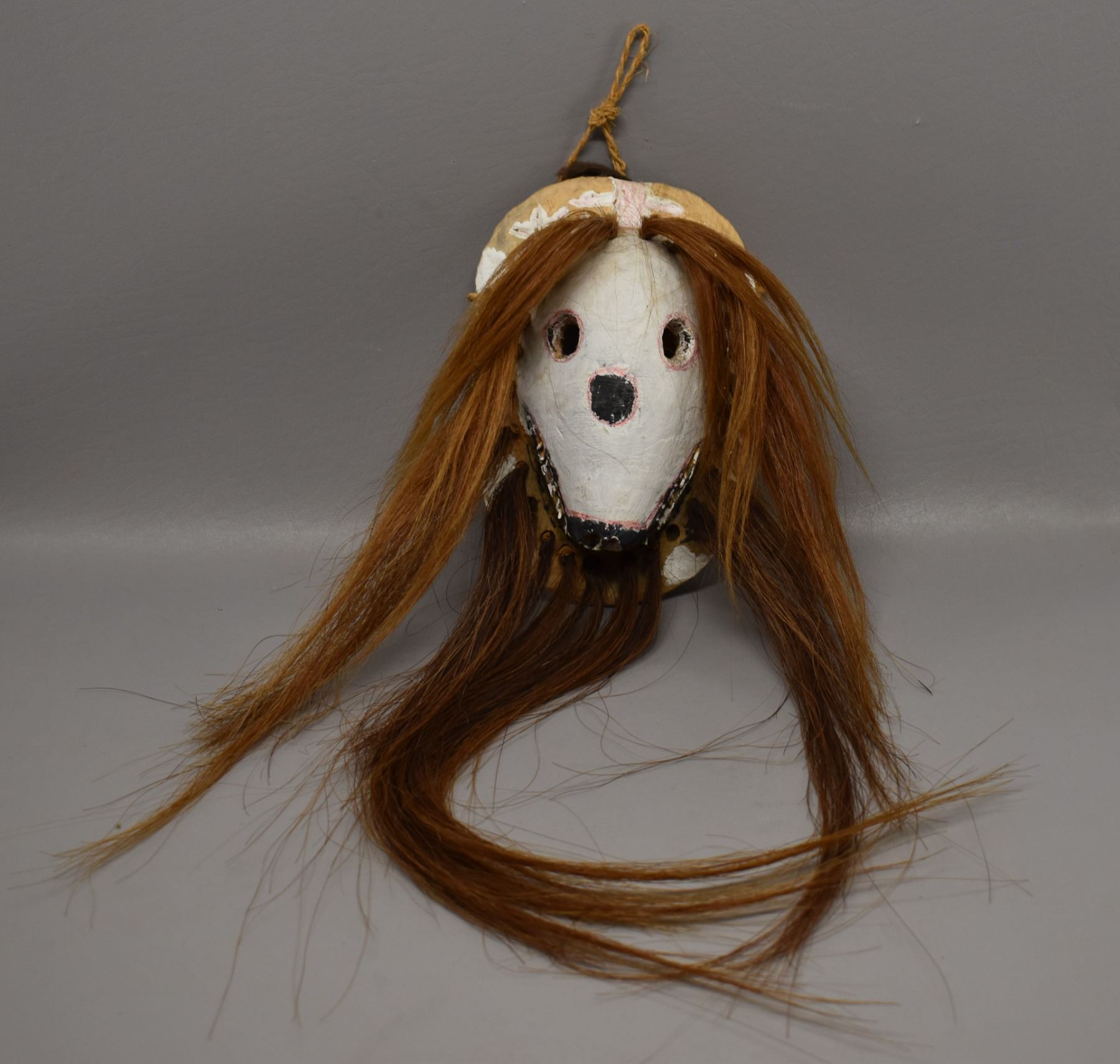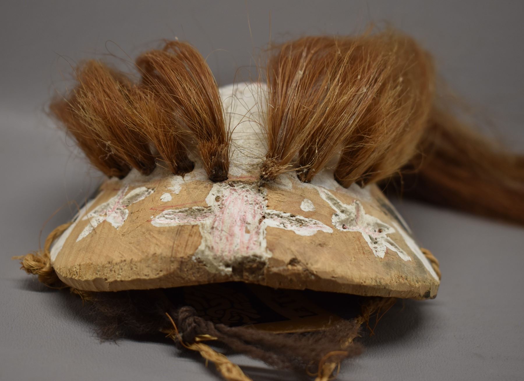 1980-90's Mexican hand carved and painted Mayo mask design with horse hair 5.25" x 7.75" excluding hair