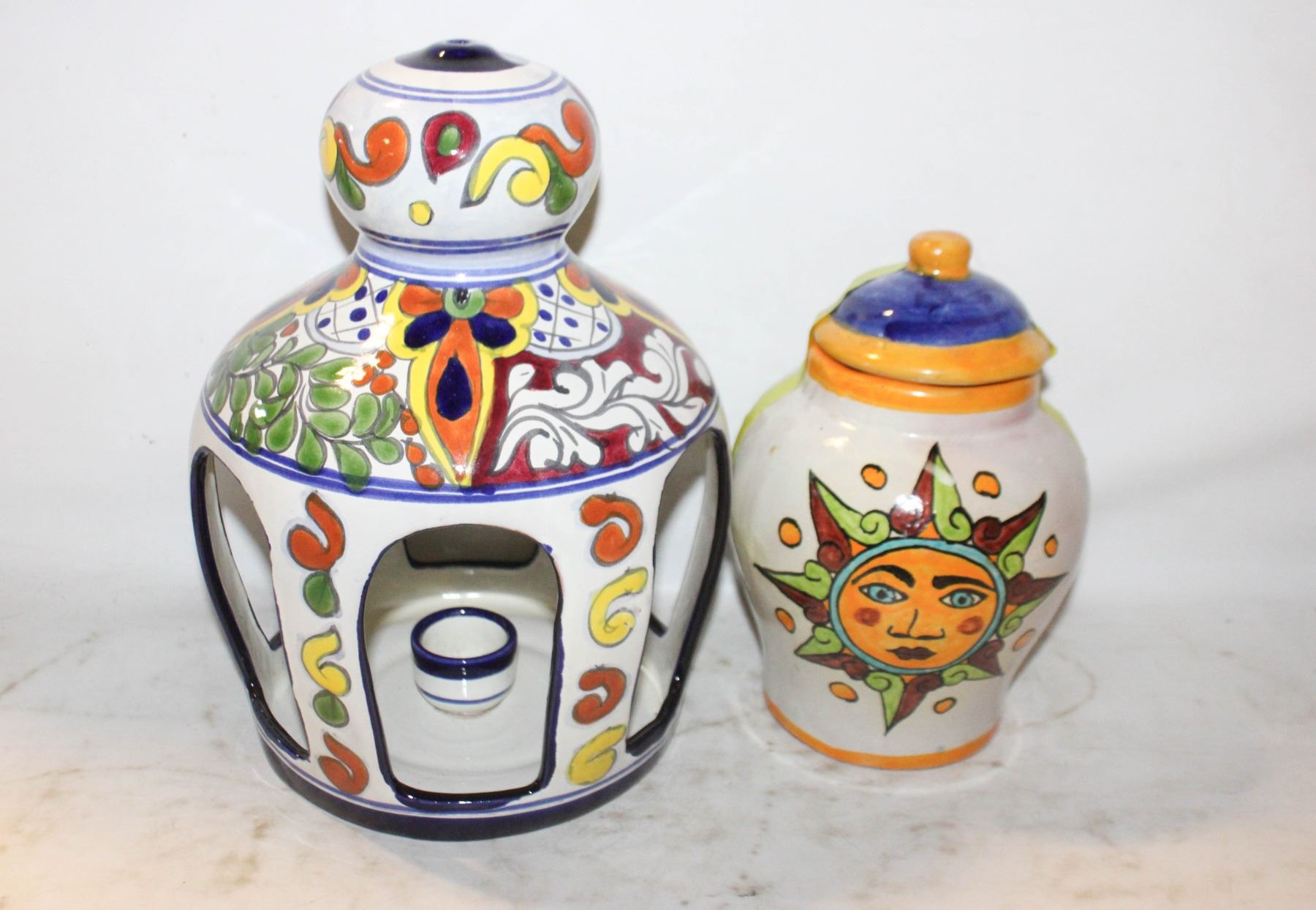 MEXICAN POTTERY LANTERN CANDLE HOLDER & TIBOR JAR