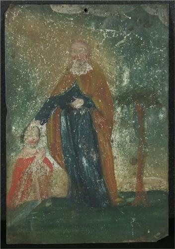 OIL ON TIN 10 1/4'' X 7'', Unsigned. Mexican retablo (religious folk painting) depicting Saint Francis of Assisi(San Francisco). Circa 19th century. Note overall wear. More information in the white binder.