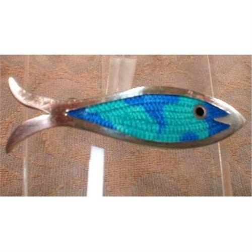 Pretty little fish pin from Mexico. Blue and green enamel over