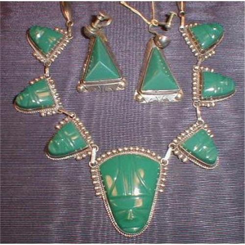 <tr><td>Title:MEXICAN Sterling JADEITE -Necklace & Earrings-</td></tr>