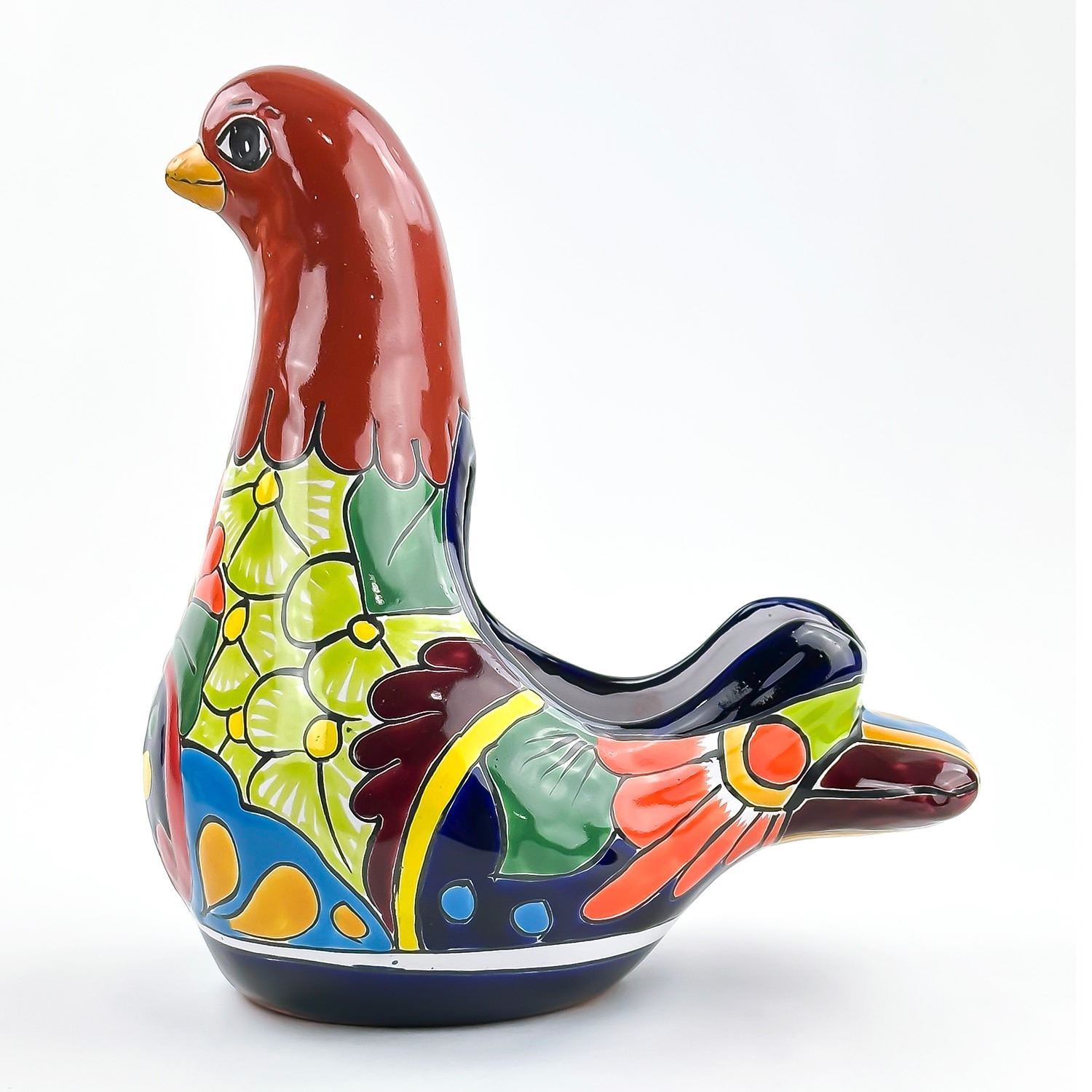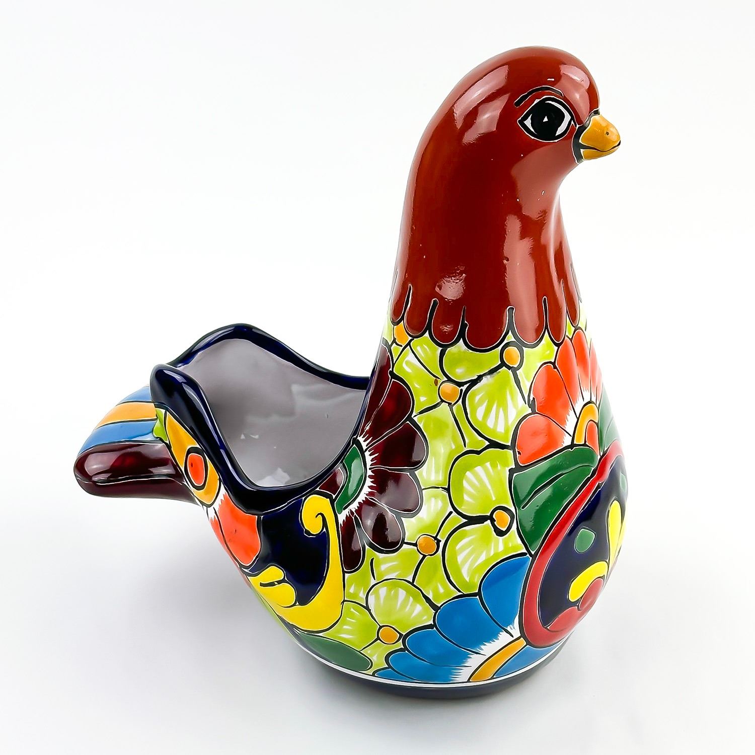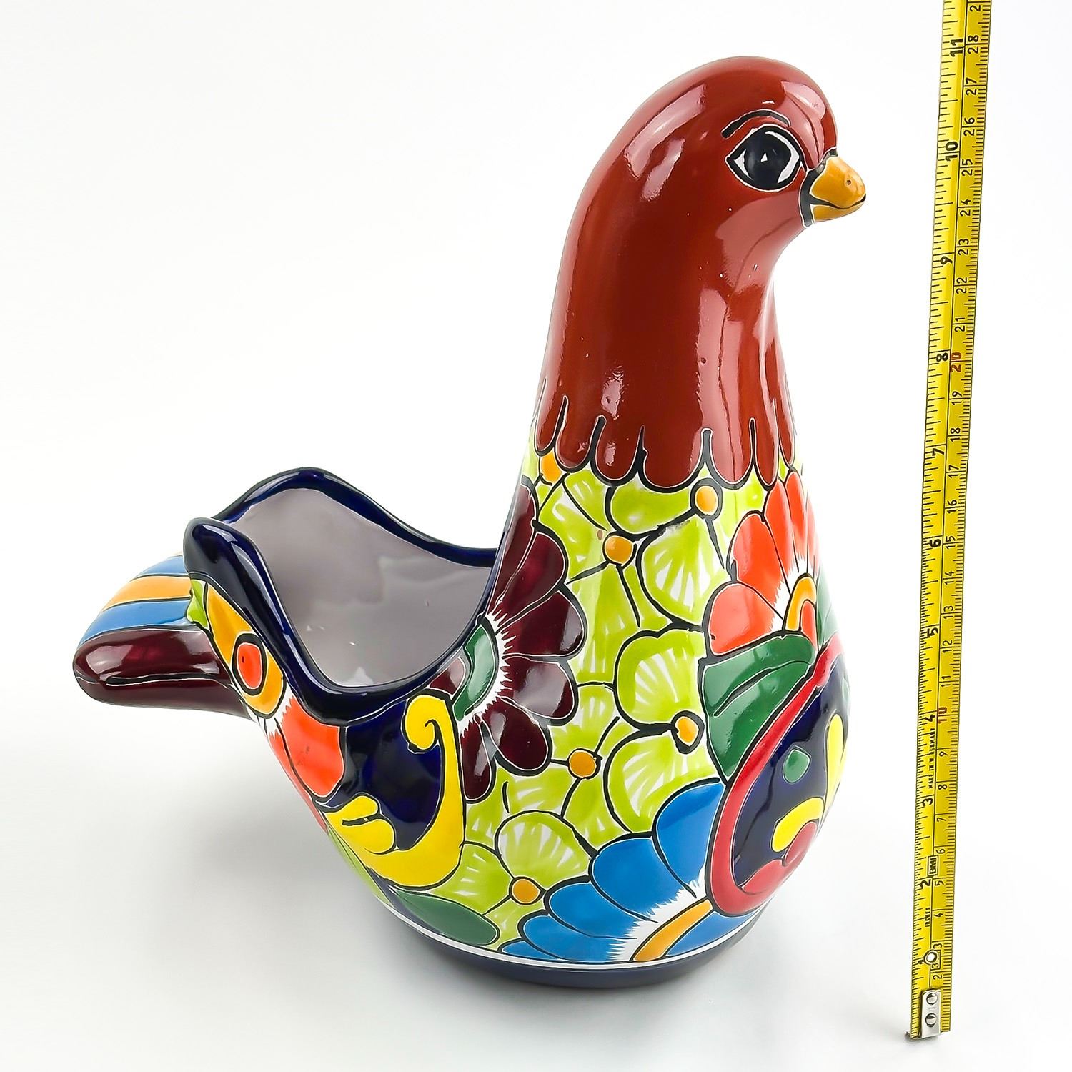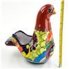 #8056 - VINTAGE HAND CRAFTED & PAINTED FOLK ART POTTERY SCULPTURE FROM MEXICO. LARGE TALAVERA RED CLAY POTTERY DOVE BIRD HOME DECOR PLANTER. MEASURES: 9.5” (24 CM) LONG BY 6.75” (17 CM) WIDE AND SITS 10.5” (27 CM) HIGH