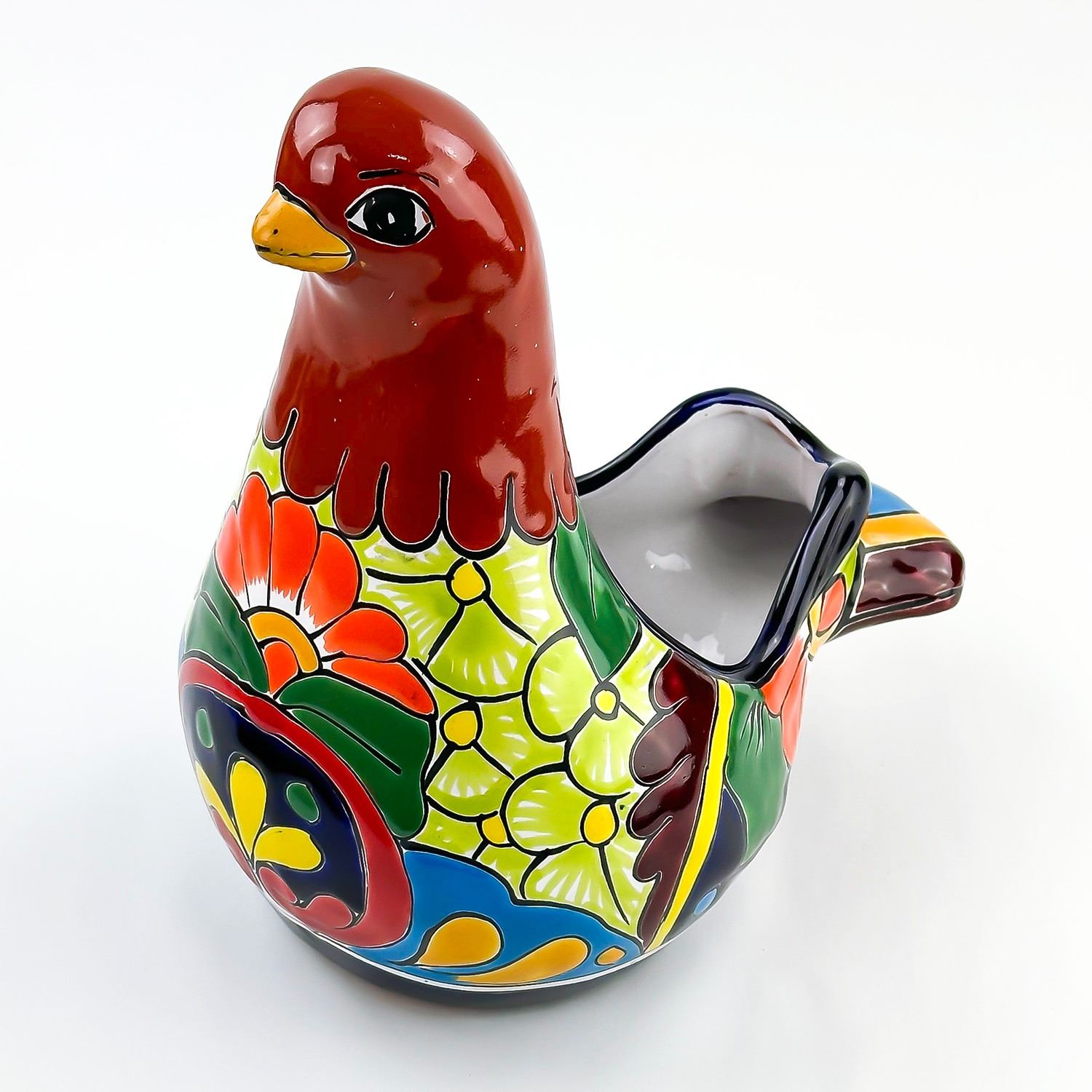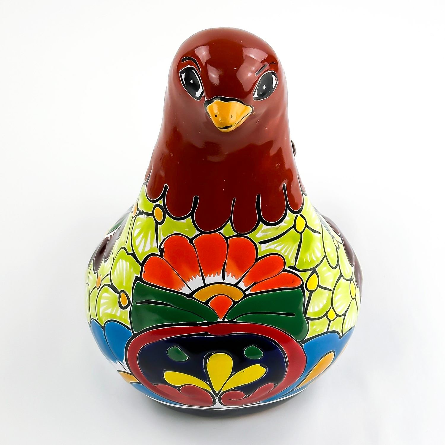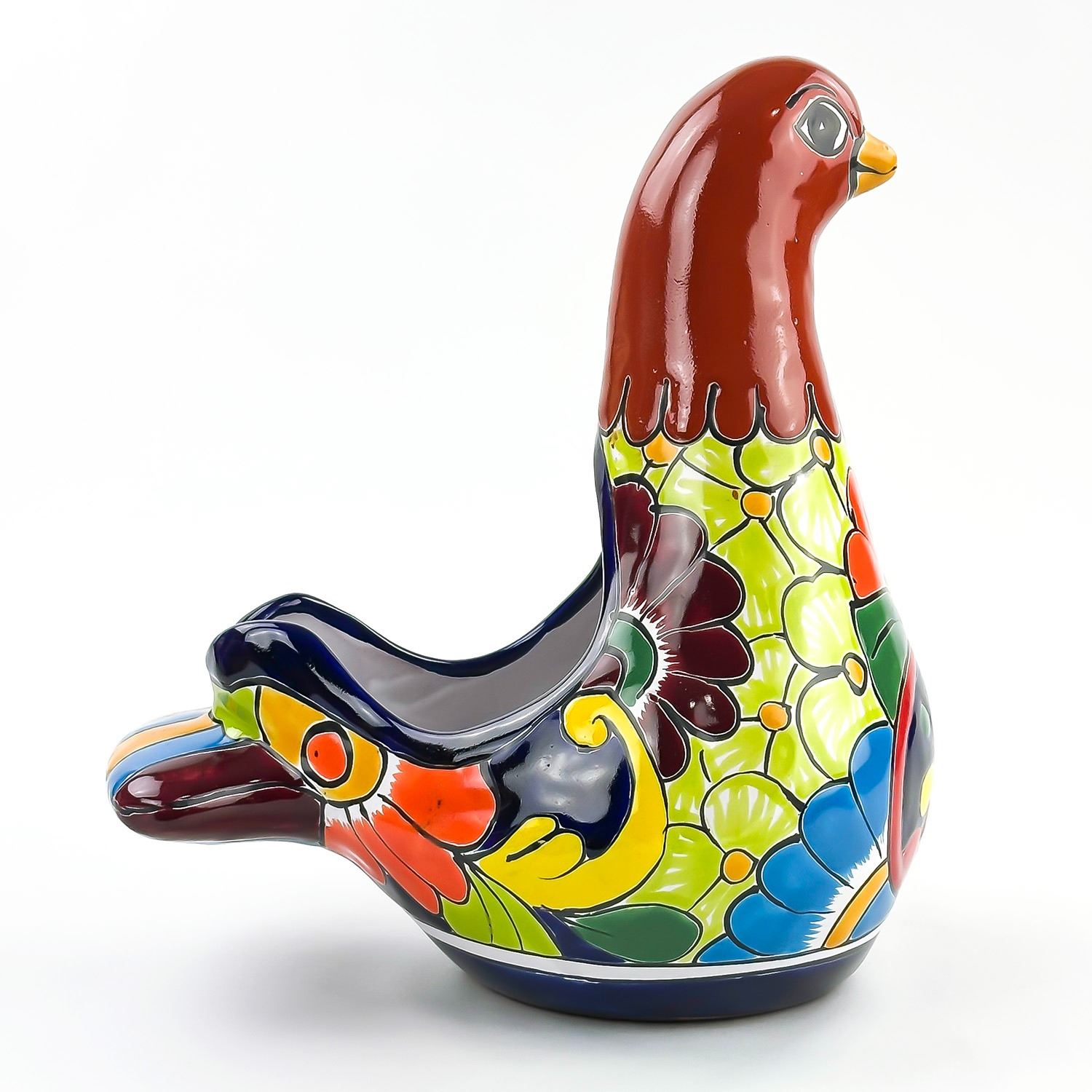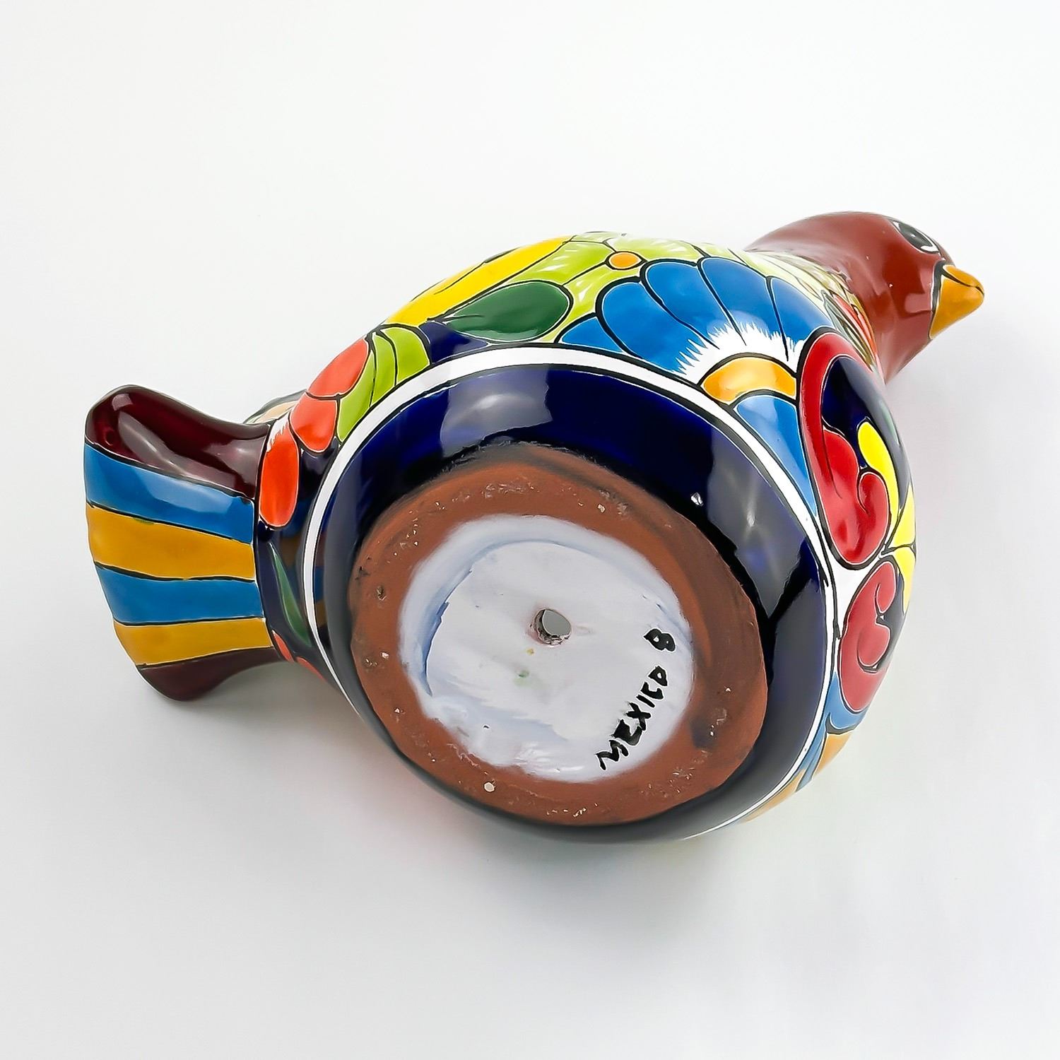 #8056 - VINTAGE HAND CRAFTED & PAINTED FOLK ART POTTERY SCULPTURE FROM MEXICO. LARGE TALAVERA RED CLAY POTTERY DOVE BIRD HOME DECOR PLANTER. MEASURES: 9.5” (24 CM) LONG BY 6.75” (17 CM) WIDE AND SITS 10.5” (27 CM) HIGH