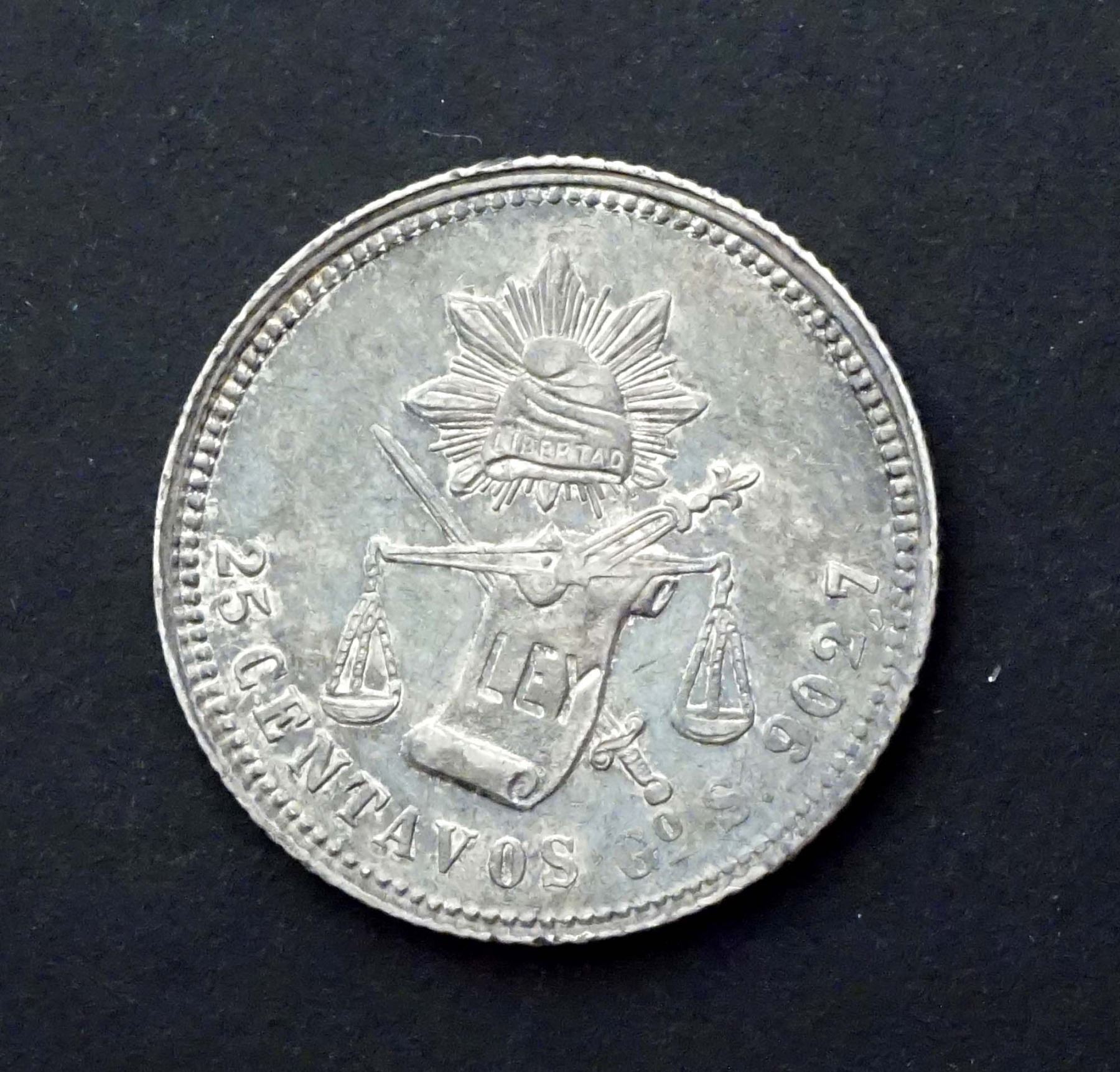 MEXICO 1870 Go. S. KM# 406.5 25 Centavos Silver 6.8 gms. Uncirculated