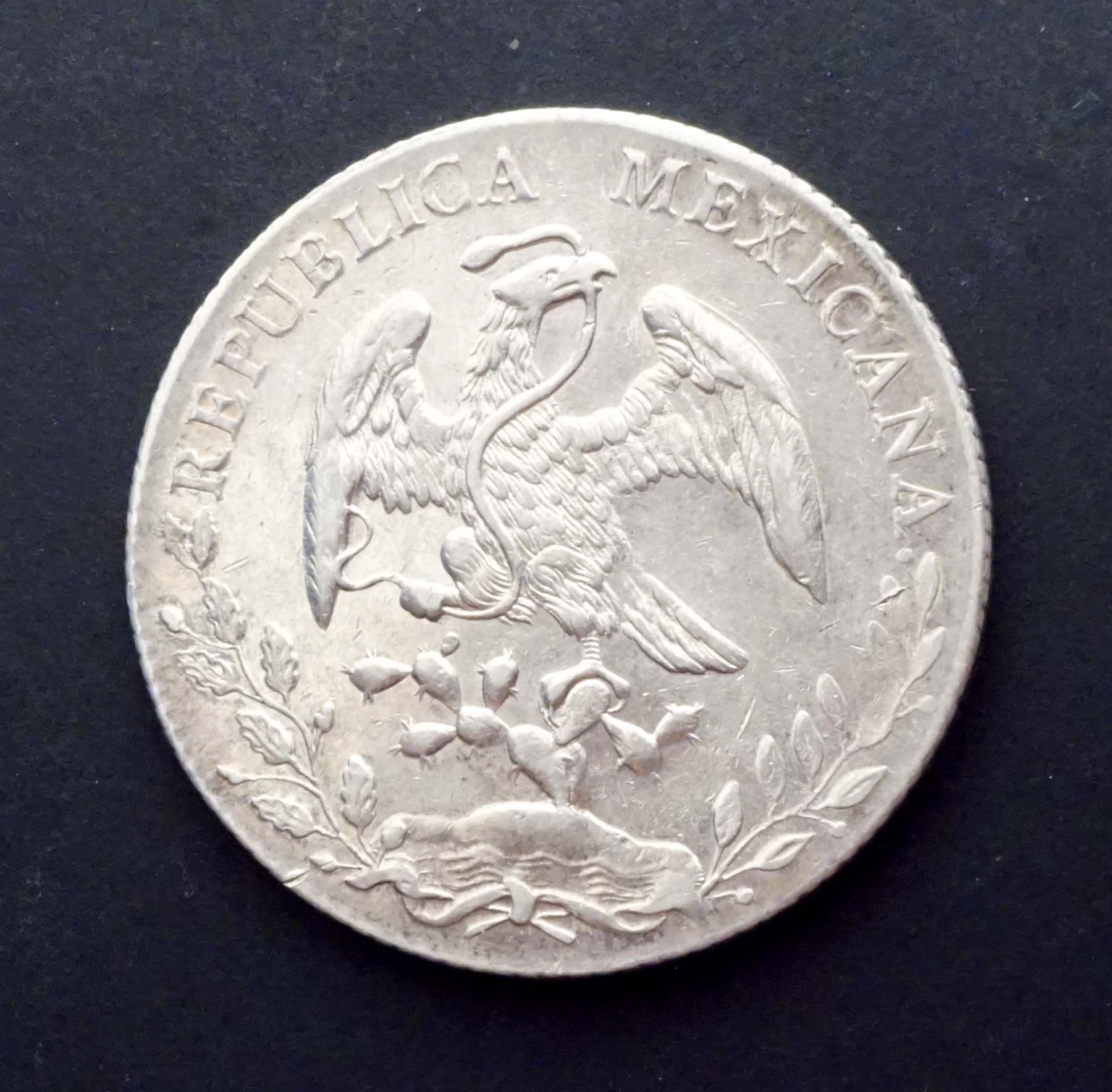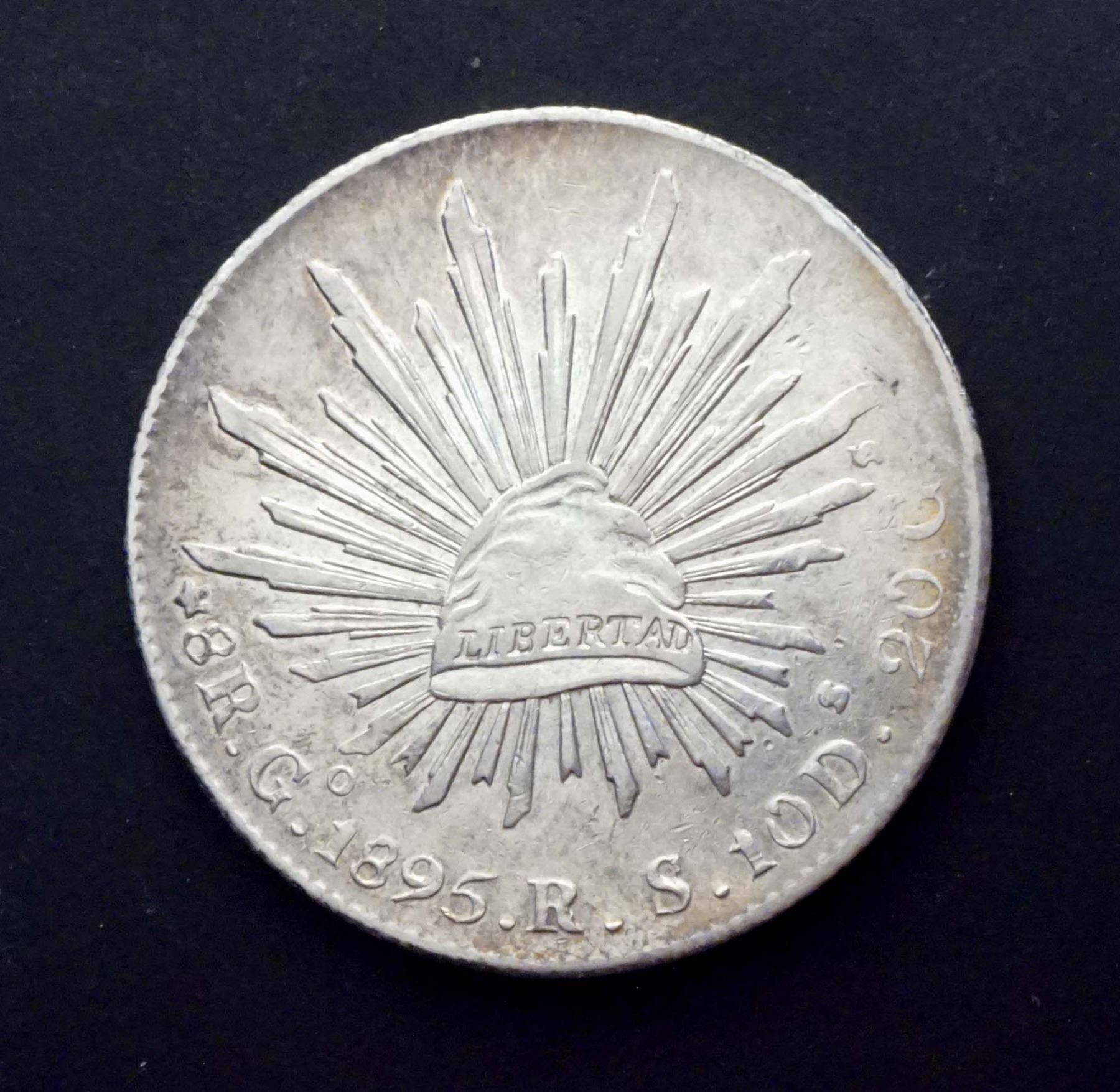 MEXICO 1895 Go R.S. KM# 377.8 8 Reales Silver 27.1 gms. Almost Uncirculated