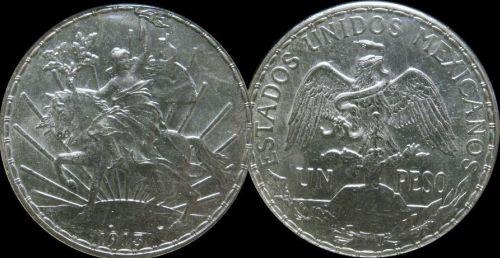 MEXICO, 1913 Peso MS62 or better (KM#453) Fully brilliant and lustrous.