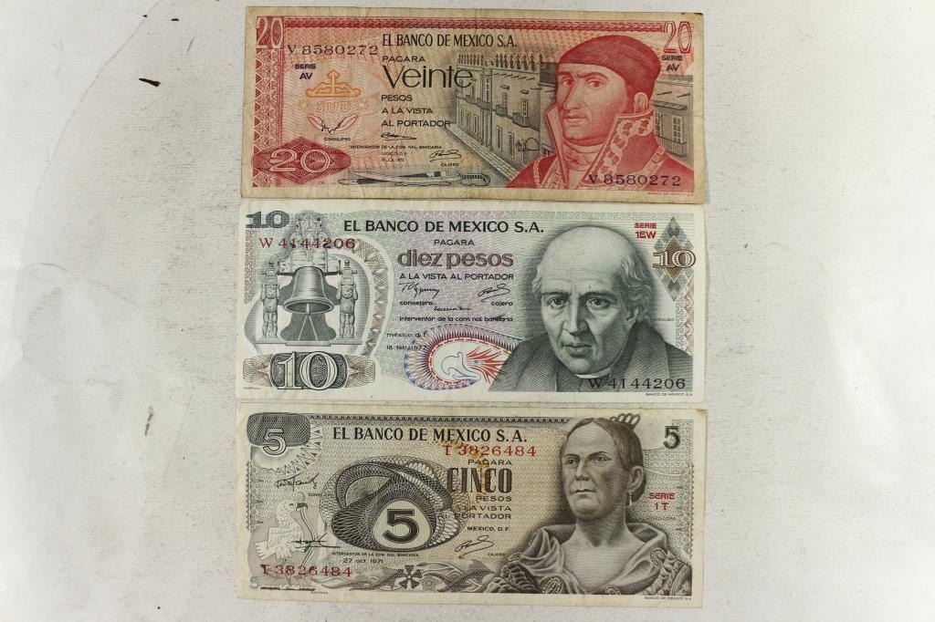 MEXICO 1971-5 PESOS, 1977-10 PESOS & 1973-20 PESOS