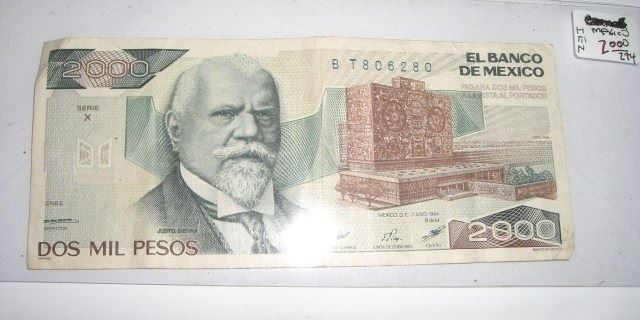 MEXICO 2000 DOS MIL PESOS SERIAL # BT806280 BANK NOTE!! NOTE CAME OUT OF SAFE!! ***Coin, Currency & All Items Listed in this auction - Grades, Conditions and Values are not Safe Deposit Coins LLC Responsibilty. Grades, Condition and Values are determined by Consigner(s) & Buyers ONLY***