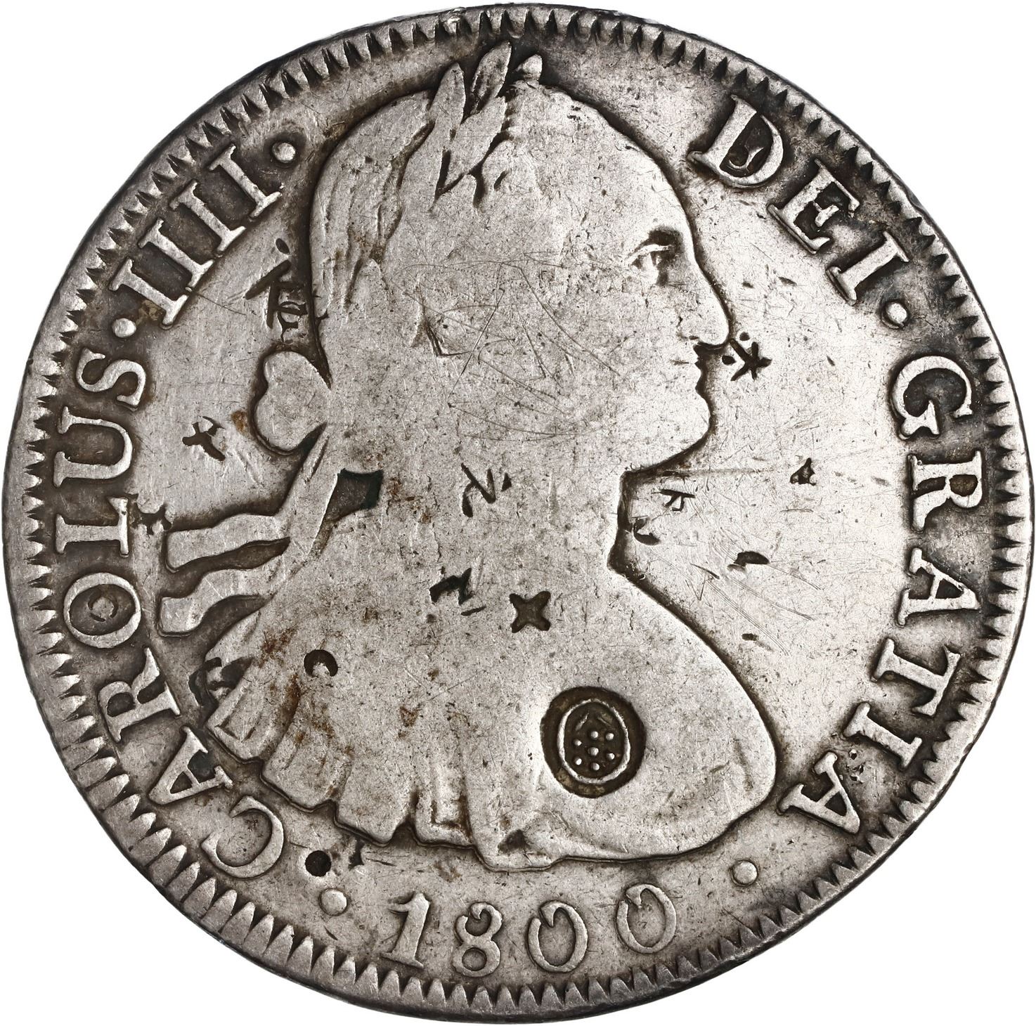 MEXICO, Mexico City, bust 8 reales, Charles IV, 1800 FM, with several small Asian chopmarks, ex-Bram