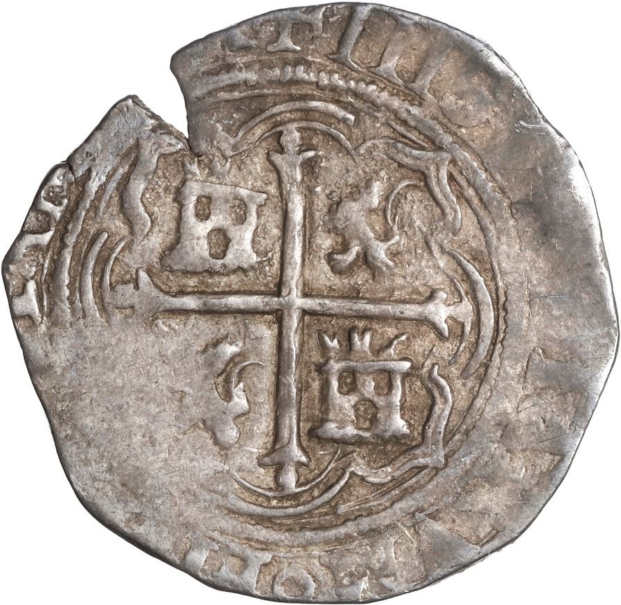 MEXICO, Mexico City, cob 1 real, Philip II, assayer F to right, mintmark oM to left, king's name as PIIIIIPVS, also IIISPANIARVM on reverse, GRTIA in legend, rare, ex-Hubbard. S-M12; KM-unl (26 for type); Cal-229. 3.40 grams. XF with nearly complete cross and clear mintmark and assayer, with both the king's name as PIIIIIPVS due to lack of an H-punch and GRTIA spelling error in the obverse legend, nice full cross with much of legend visible including II used for H in HISPANIARVM (first we have seen with these errors on a 1 real), nice full cross, natural edge-split, richly toned with light tan sedimentation in the fields. Pedigreed to the Clyde Hubbard Collection, with his tag.