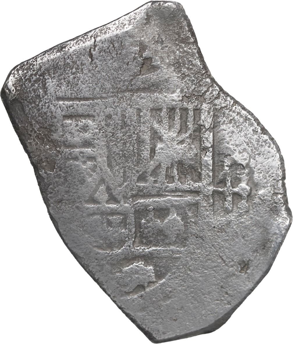 MEXICO, Mexico City, cob 4 reales, Charles II, assayer not visible. KM-39; Cal-Type 91. 12.10 grams. Neat coin with clear denomination 4 to right of bold partial shield, cross a little weak yet nearly complete. With original certificate from the salvor/conservator. Recovered from: Joanna, sunk in 1682 off South Africa