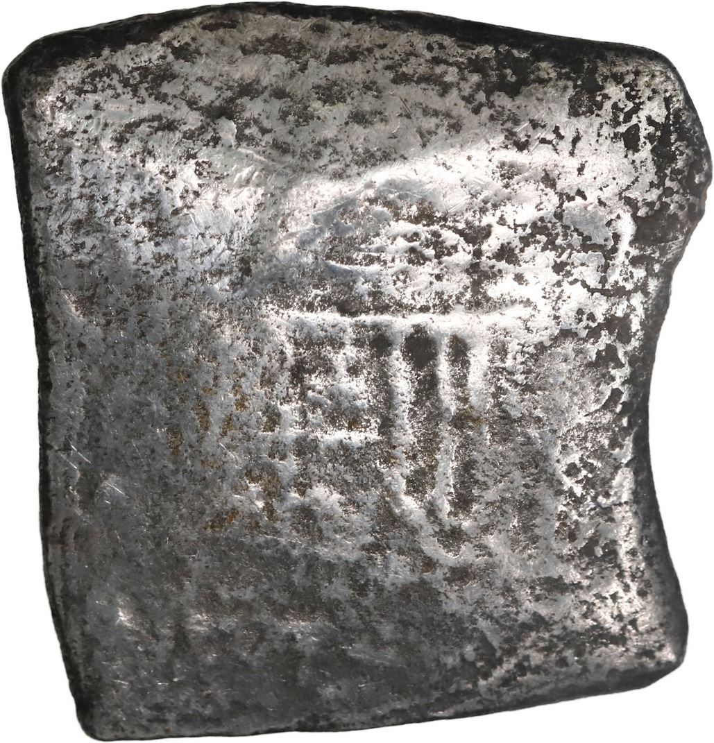 MEXICO, Mexico City, cob 4 reales, Charles II, assayer not visible. KM-39; Cal-Type 91. 14.25 grams. Corroded and a bit thin around the edges yet solid with some shield and cross detail, somewhat shiny from cleaning during salvage now lightly toned with golden hues. Recovered from: Joanna, sunk in 1682 off South Africa