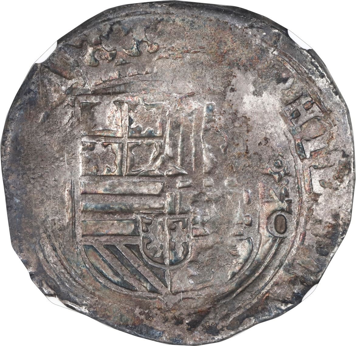 MEXICO, Mexico City, cob 4 reales, Philip II, assayer O below mintmark oM to right, NGC XF details /