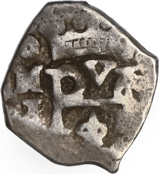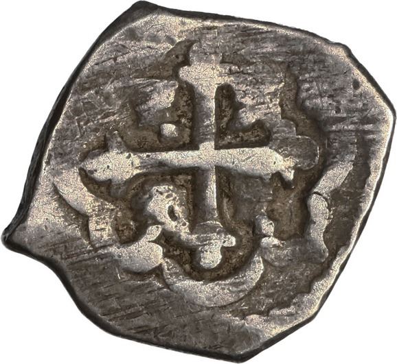 MEXICO, Mexico City, cob ½ real, Philip V, assayer J, style of 1714-24, ex-"Meseta Central." S-M22; KM-24. 1.53 grams. XF with a bit of a crude strike though with clear oMJ to left of nearly complete monogram, bold cross, lightly cleaned high points with dark olive toning in the fields. Pedigreed to the "Meseta Central" hoard, with small certificate.