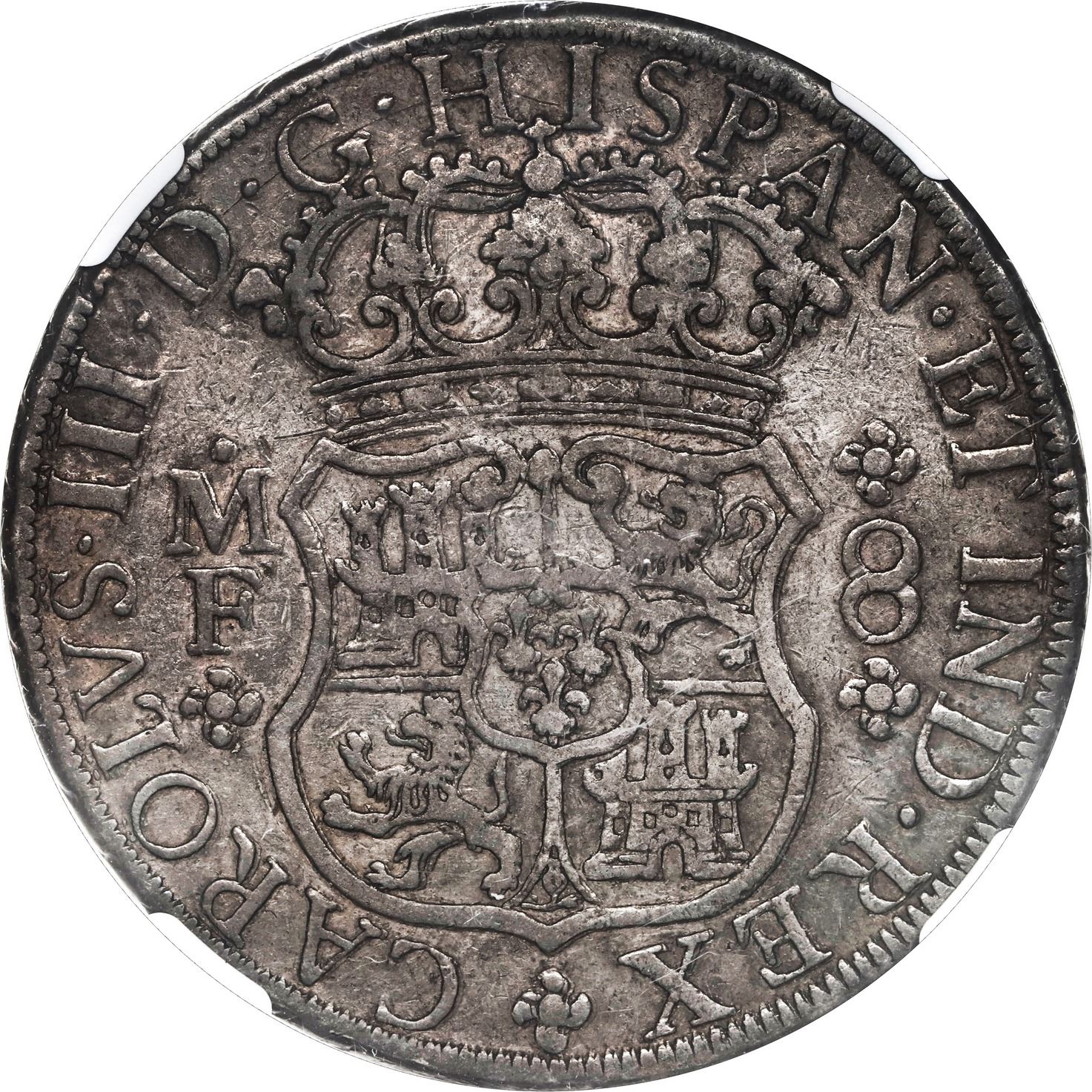 MEXICO, Mexico City, pillar 8 reales, Charles III, 1768 MF, NGC XF 40.