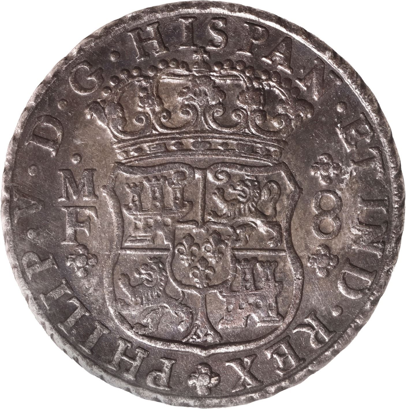 MEXICO, Mexico City, pillar 8 reales, Philip V, 1746 MF, ICCS EF-45 (Auguste: 1761 Shipwreck Label),