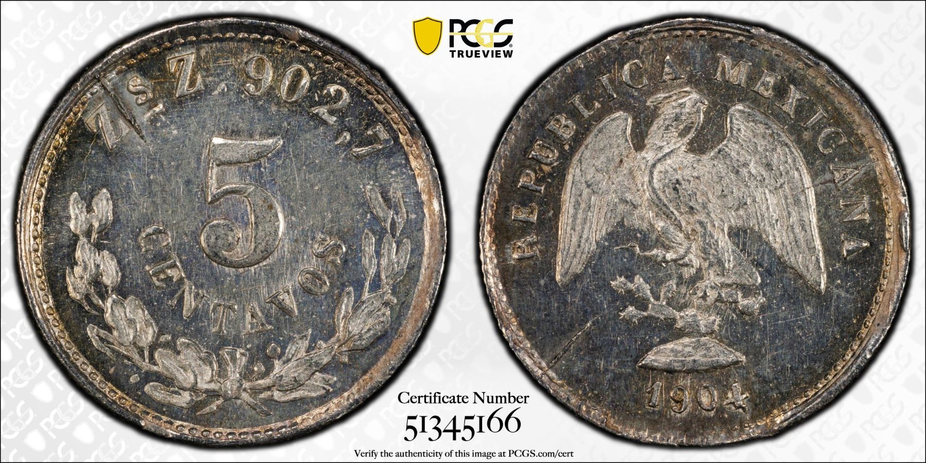 MEXICO: Republic, AR 5 centavos, 1904-Zs, PCGS MS64