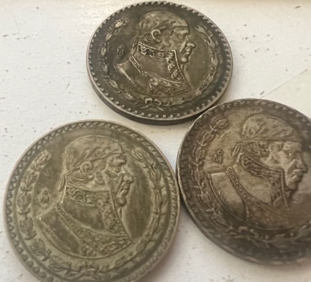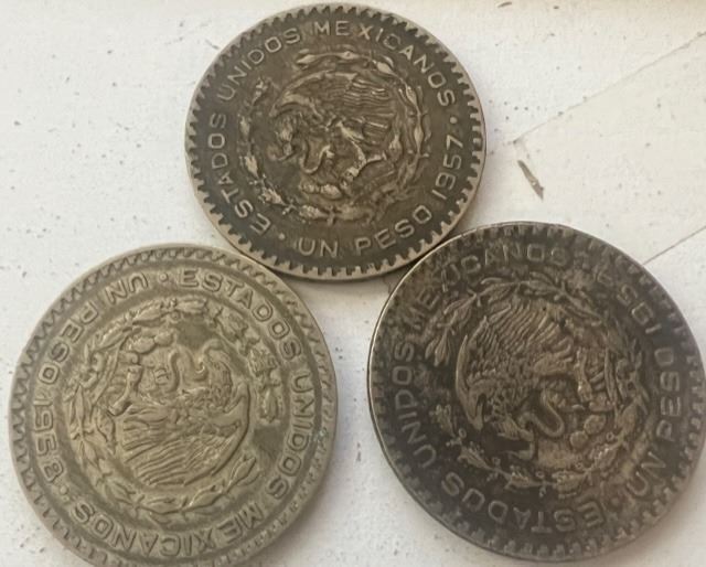 MEXICO SILVER UN PESO LOT OF THREE, 1957,8,9