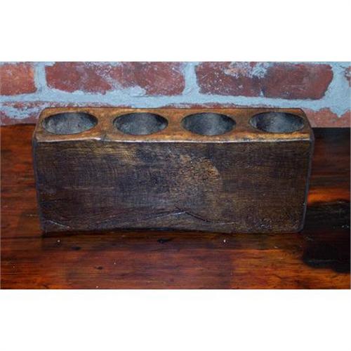 Gorgeous c1930s 4 WHOLE WOODEN SUGAR MOLD from Mexico. Originally used to form liquid sugar into cones known as pilloncillo. We call this our starter kit package as it includes the mold, 4 glass votives, wrought iron holder and 4 candles to get you started. Such a beautiful piece to display. MOLD MEASUREMENTS ARE: Width-3.5", Length 11-16" Height 5 inches, Weight 1.5 pound CANDLES: Are available in Red, Blue, White, Dark Red, Green, Orange or Beeswax. Please indicate the color you want. If you do not specify we will send the beeswax
