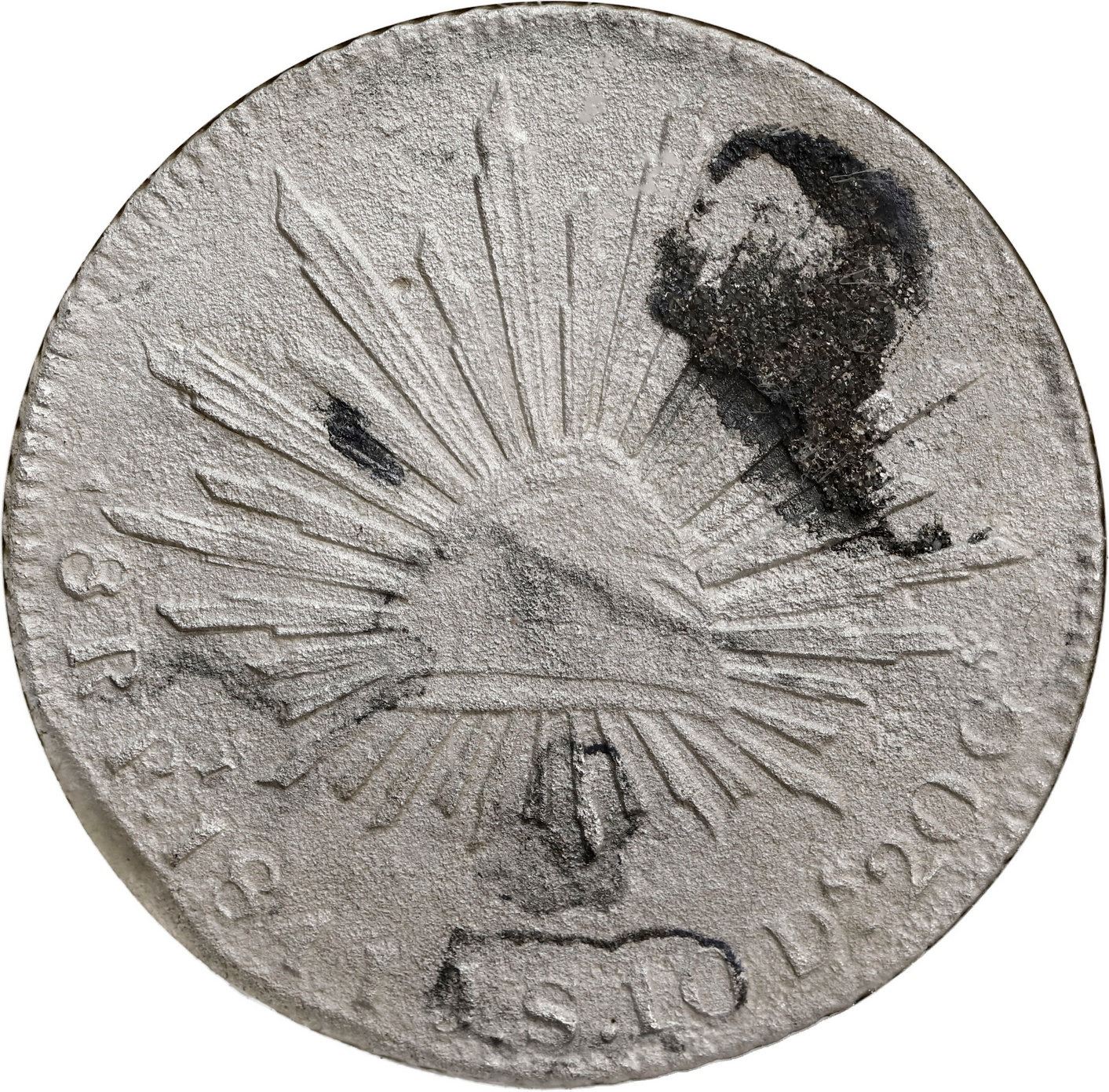 MEXICO, San Luis Potosí, cap-and-rays 8 reales, 1841 JS, NGC Shipwreck Effect (SS New York Shipwreck Label). DP-Pi16; KM-377.12. Matte, corroded surfaces from saltwater exposure though much detail showing through, patch of dark encrustation on the cap-and-rays side. Recovered from: S.S. New York, sunk in 1846 off New Orleans
