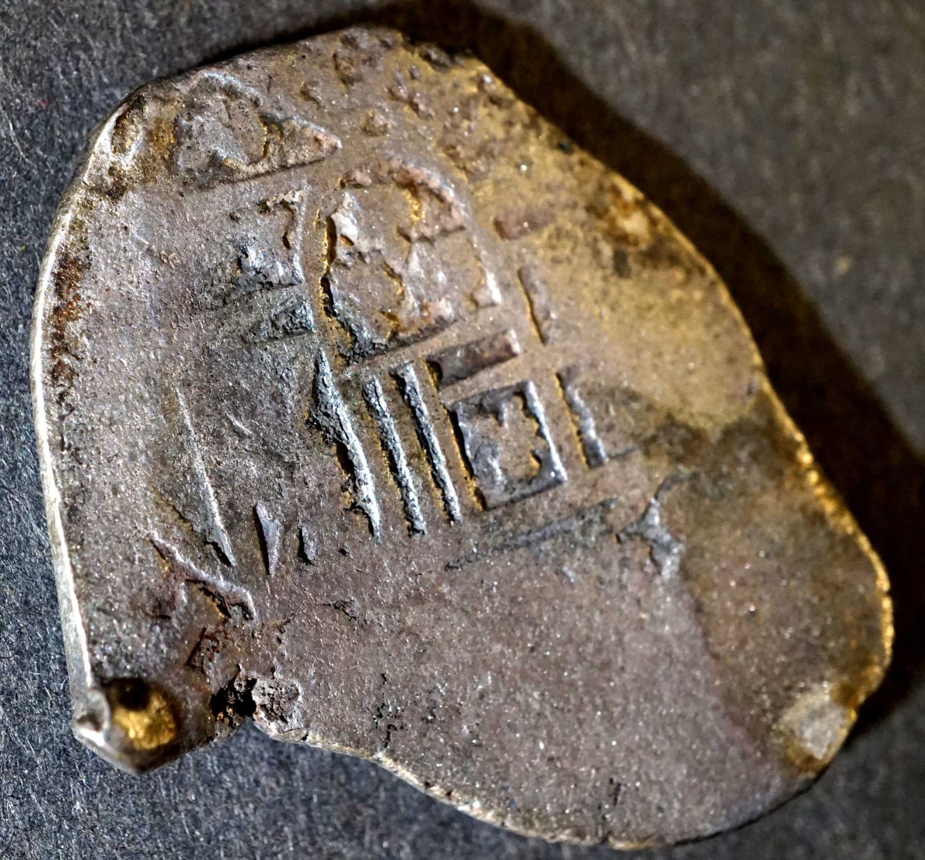 23.31 grams Un-dated with signs of being in salt water, this cob was purported to have been in a gold wire frame and from the Atocha collection.