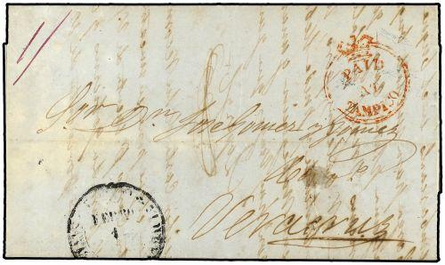 1854 TAMPICO a VERACRUZ. Marca PAID/AT/TAMPICO en rojo, porte manuscrito ´1/-´.
