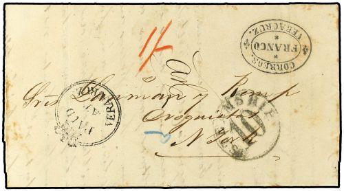 1864 VERACRUZ a NEW YORK. Marca PAID/AT/VERACRUZ y tarifa manuscrita "1/-". MAGNIFICA.