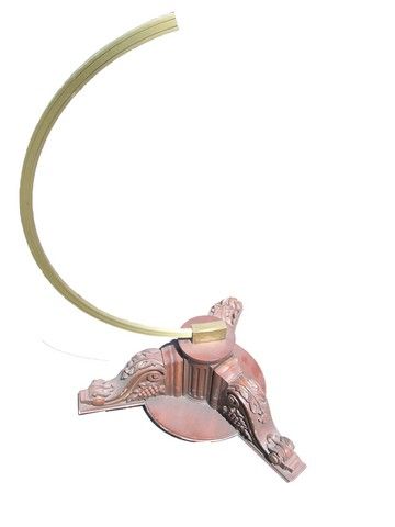 From an unidentified production, this is a large size stand that appears to have once held a giant Globe. The stand has a carved wooden base with a chiseled design pattern, and is affixed to a large, heavy curved brass fixture. Oversized item. Additional Postage Required.