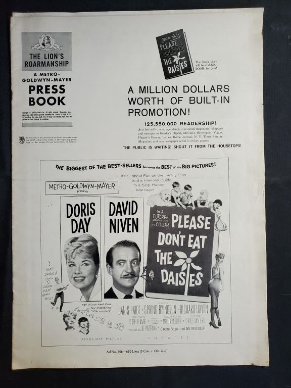 MGM Pressbook "PLEASE DON'T EAT THE DAISIES" No cut outs. 19 pages. Starring Doris Day and Dav