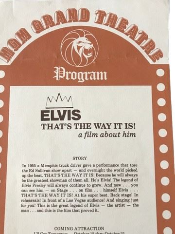 MGM That’s The Way It Is Original Program - MGM's "That's the Way It Is" is a groundbreaking documentary that provides an intimate look at Elvis Presley's 1970 Las Vegas residency. Very good condition with a fold crease across the top portion approximately 2" down.