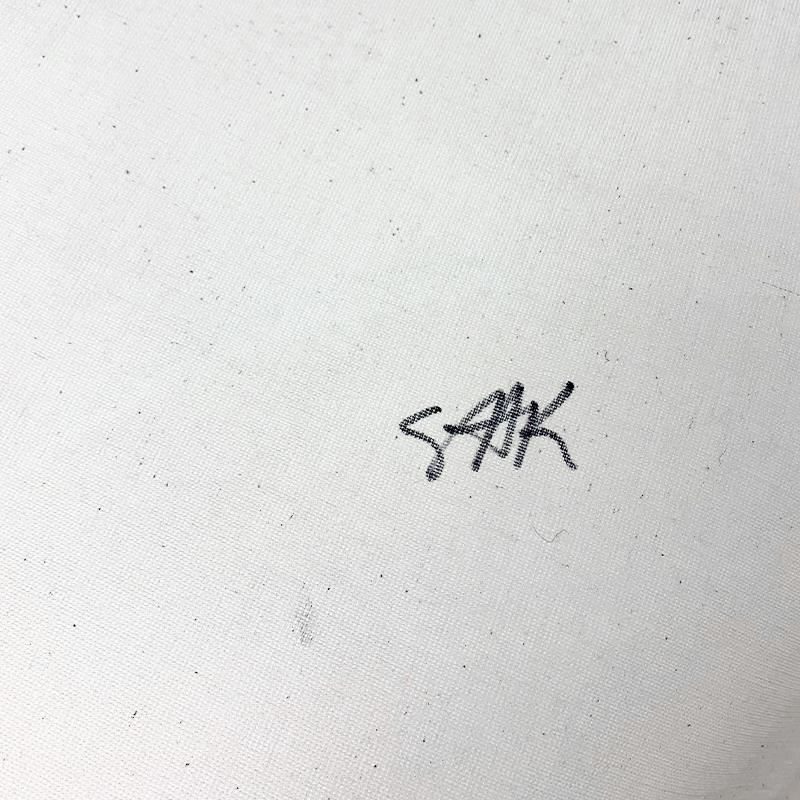 "MGM" is a hand pulled silkscreen mixed media on canvas by Andy Warhol protege Steve Kaufman (1960-2010). This piece is hand signed inverso and includes a letter of authenticity. As is common with Kaufman's works, this piece may have perceived minor flaws and creases. Measures approximately 36" x 50" (image).
