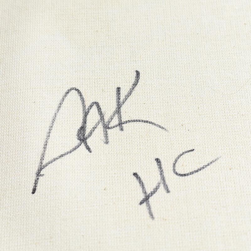 "MGM" is a hand painted, hand pulled limited edition silkscreen on canvas by Andy Warhol protege, Steve Kaufman (1960-2010). This piece is from an HC edition and hand signed inverso by the artist. Measures approx. 50" x 30". Measures approx. 50" x 30". ** Please note: there are noticeable paint marks on the image.**