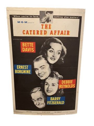 MGM's "The Catered Affair" (1956) starring Debbie Reynolds, Bette Davis, Ernest Borgnine, and Barry Fitzgerald, signed poster glued onto posterboard. Debbie Reynolds signed the poster and it once hung on the walls of her Dance Studio.Numbered 56/234. #6177.
