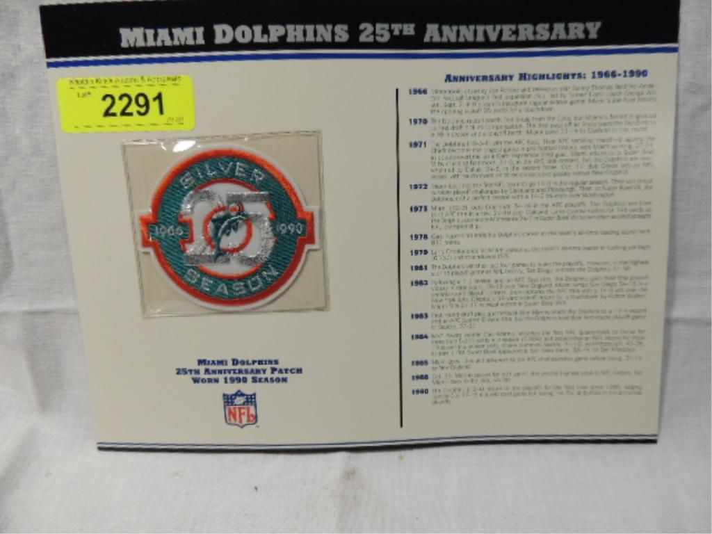 MIAMI DOLPHINS 25TH ANNIVERSARY PATCH WORN 1990 SEASON. SEE PICTURE FOR DETAILS