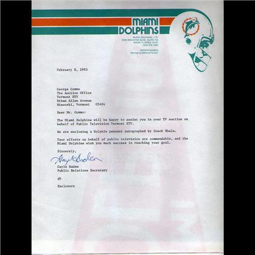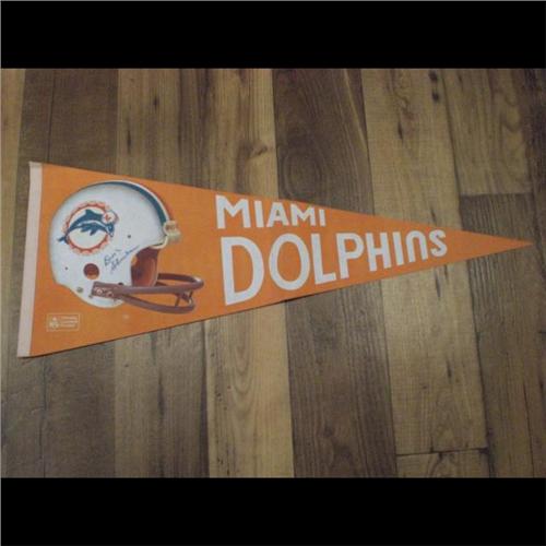 MIAMI DOLPHINS SIGNED FLAG, AUTHENTICITY LETTER & ENVELOP