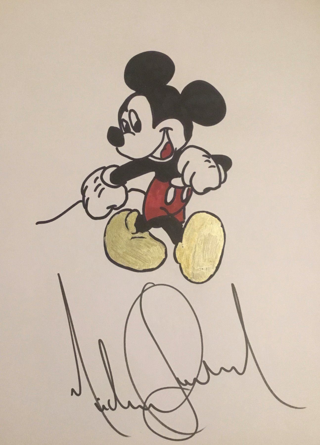 A drawing of Walt Disney Character 'Mickey Mouse' out on a stroll.