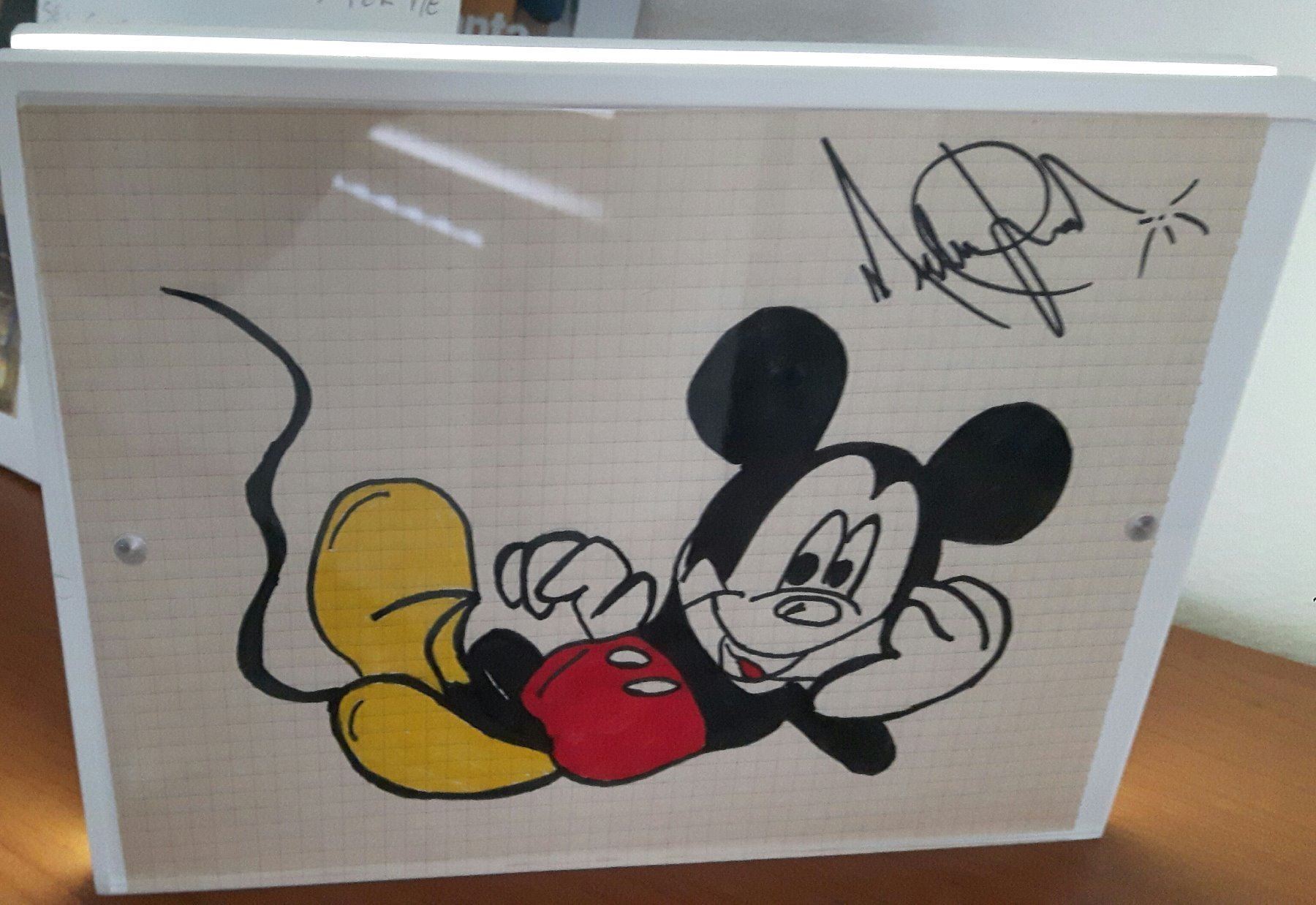A relaxing Mickey Mouse, shown his cool charm for us. A coloured drawing by Michael Jackson on graph paper, signed in the top corner. PLEASE NOTE THE DRAWING ISN'T FRAMED, ITS ONLY FOR PRESENTATION PURPOSES.