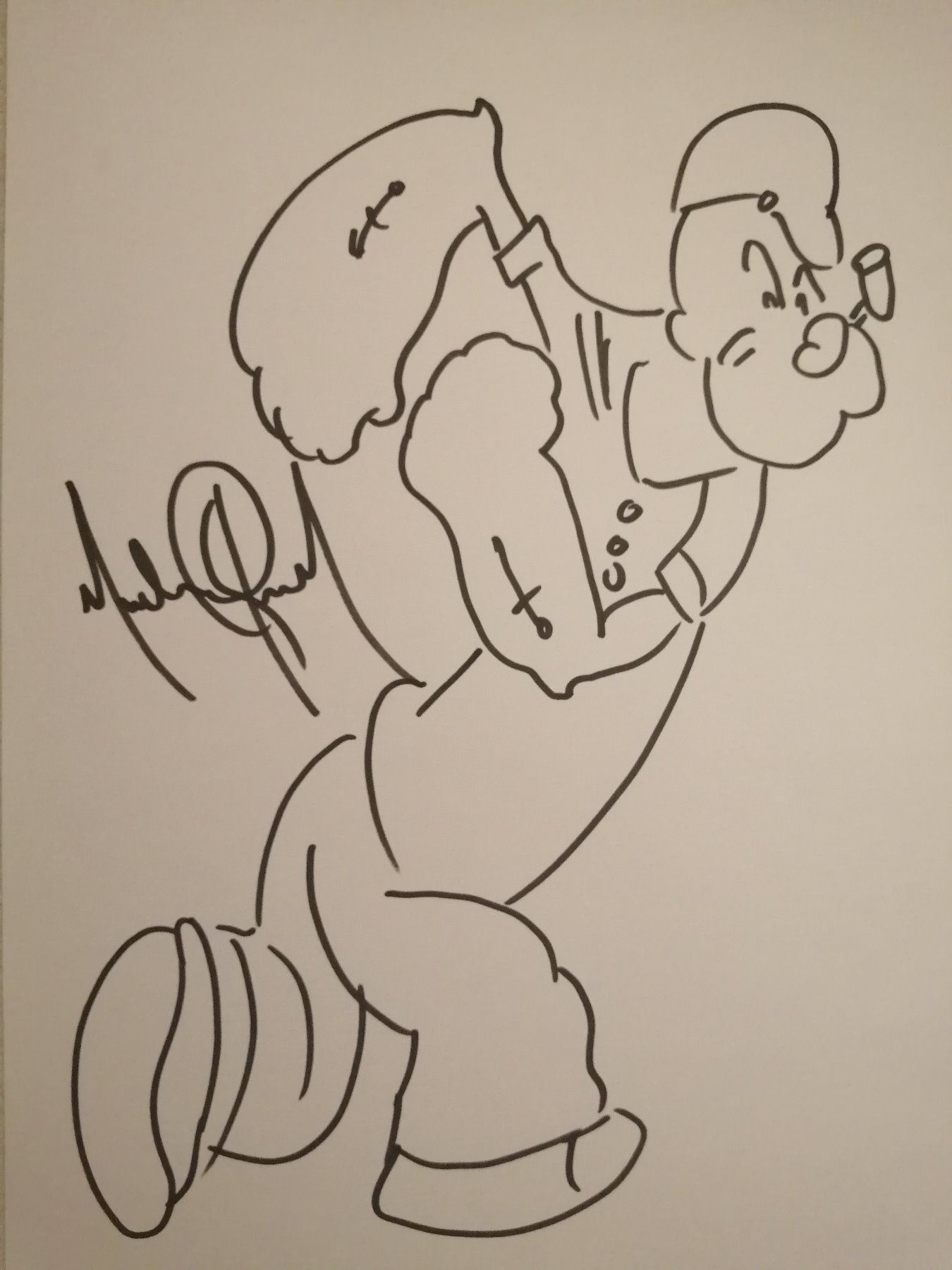 This drawing in black marker of Popeye, signed to the left of the image by Michael Jackson on art paper. Supplied with coa.