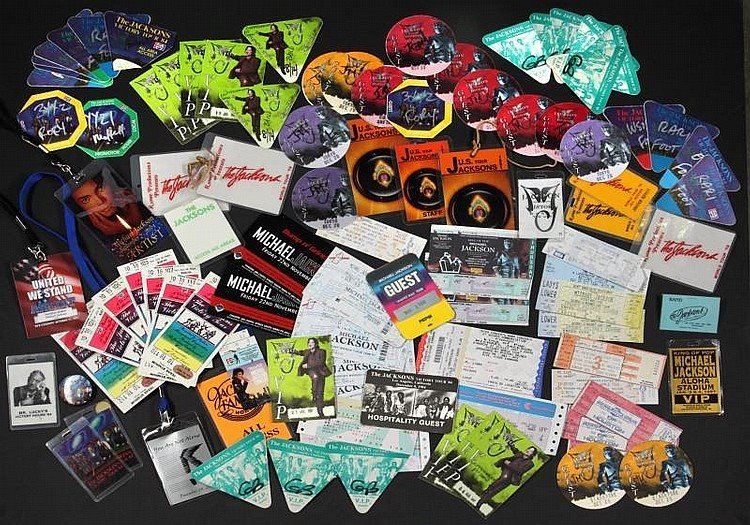 A rare opportunity to obtain this huge bundle of backstage passes to Michael Jackson and The Jacksons concerts. From Michael Jackson's HIStory Tour, United We Stand concert, You Are Not Alone concert, The Jacksons Victory Tour, and others. The passes read "All Access," "VIP," "Guest Hospitality," "Guest," and other identifiers. Accompanied by unused concert tickets. PROVENANCE From the collection of drummer Jonathan Moffett.