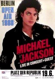 MICHAEL JACKSON BAD TOUR CONCERT POSTER PROMOTING THE CONCERT AT PLATZ DER REPUBLIK IN BERLIN GERMANY ON JUNE 19TH 1988. MEASURING 23 1/2 x 33.
