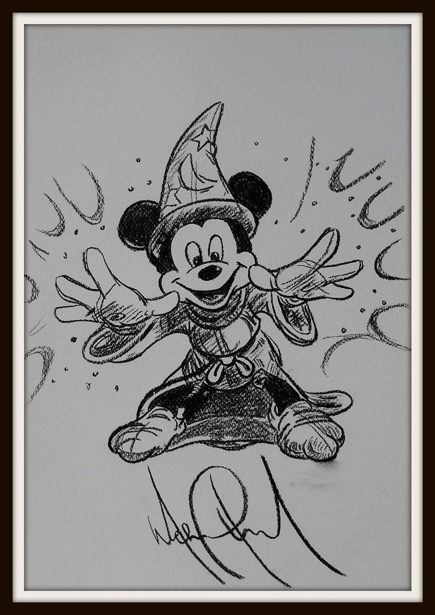 Fantasia Mickey by Michael Jackson. Size of drawing: 12x18 inches. Additionally signed by Michael Jackson. Professionally mounted and framed in wood. Supplied with coa.