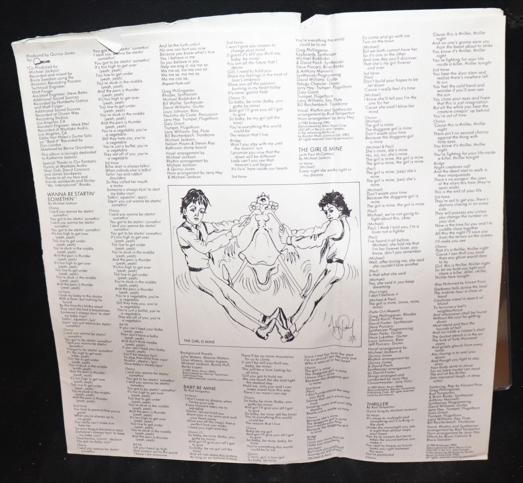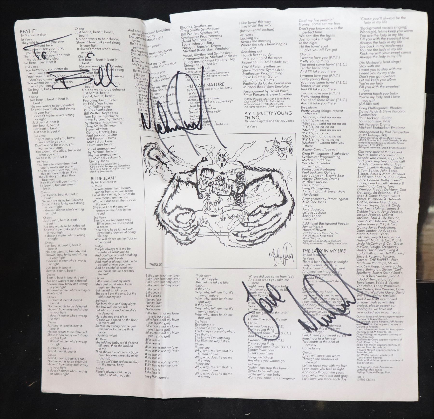 Thriller album inner sleeve signed "TO BILL ... MICHAEL" on top, and "LOVE MICHAEL" at bottom.