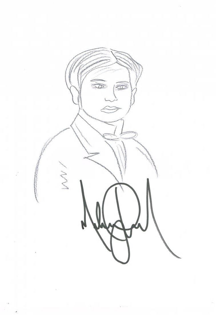 A drawing of Harry Houdini in pencil signed by Michael Jackson in black sharpie. Size: 16x12 inches. Supplied with coa.